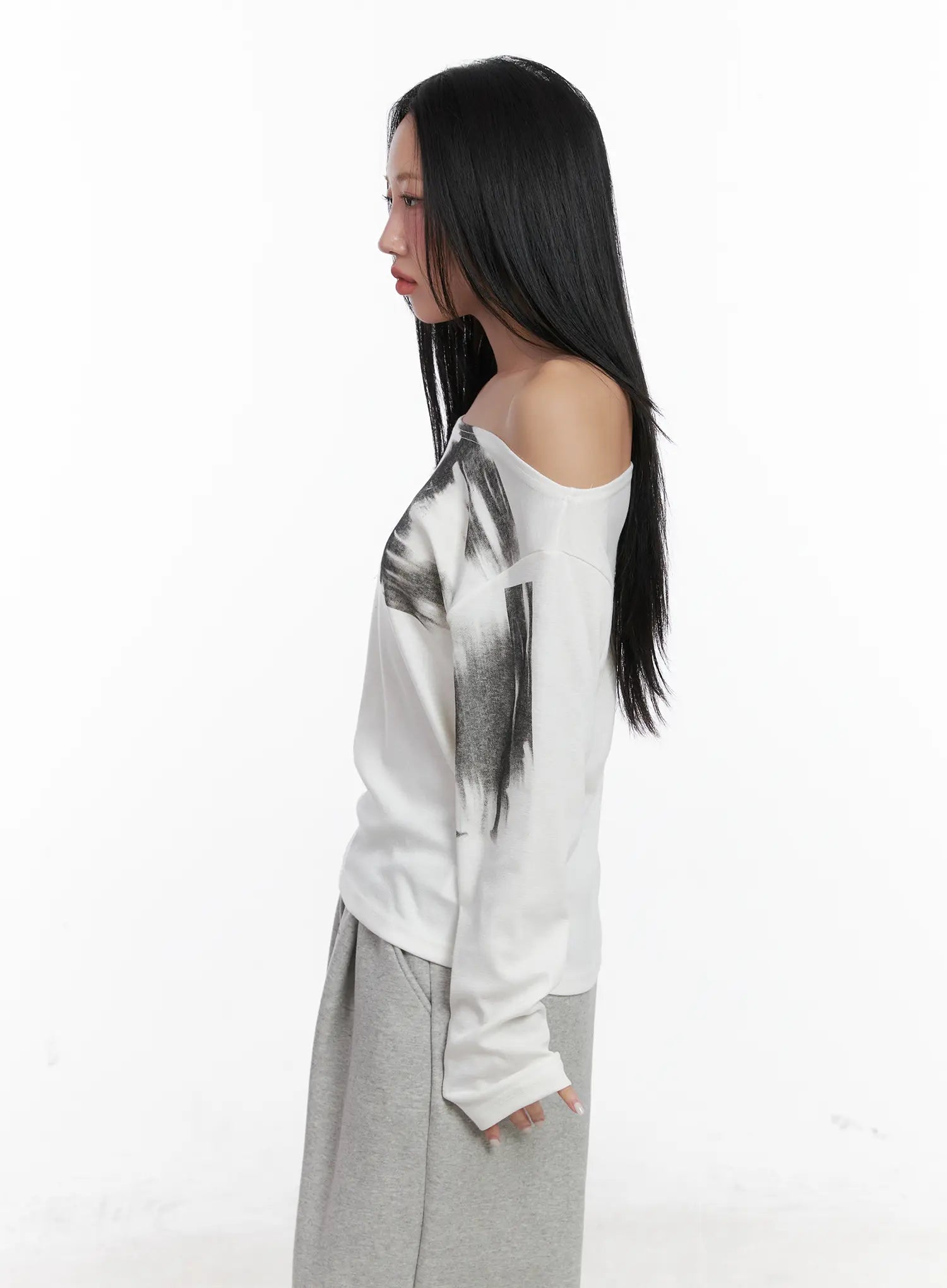 Off-Shoulder Long Sleeve Graphic Top CN528