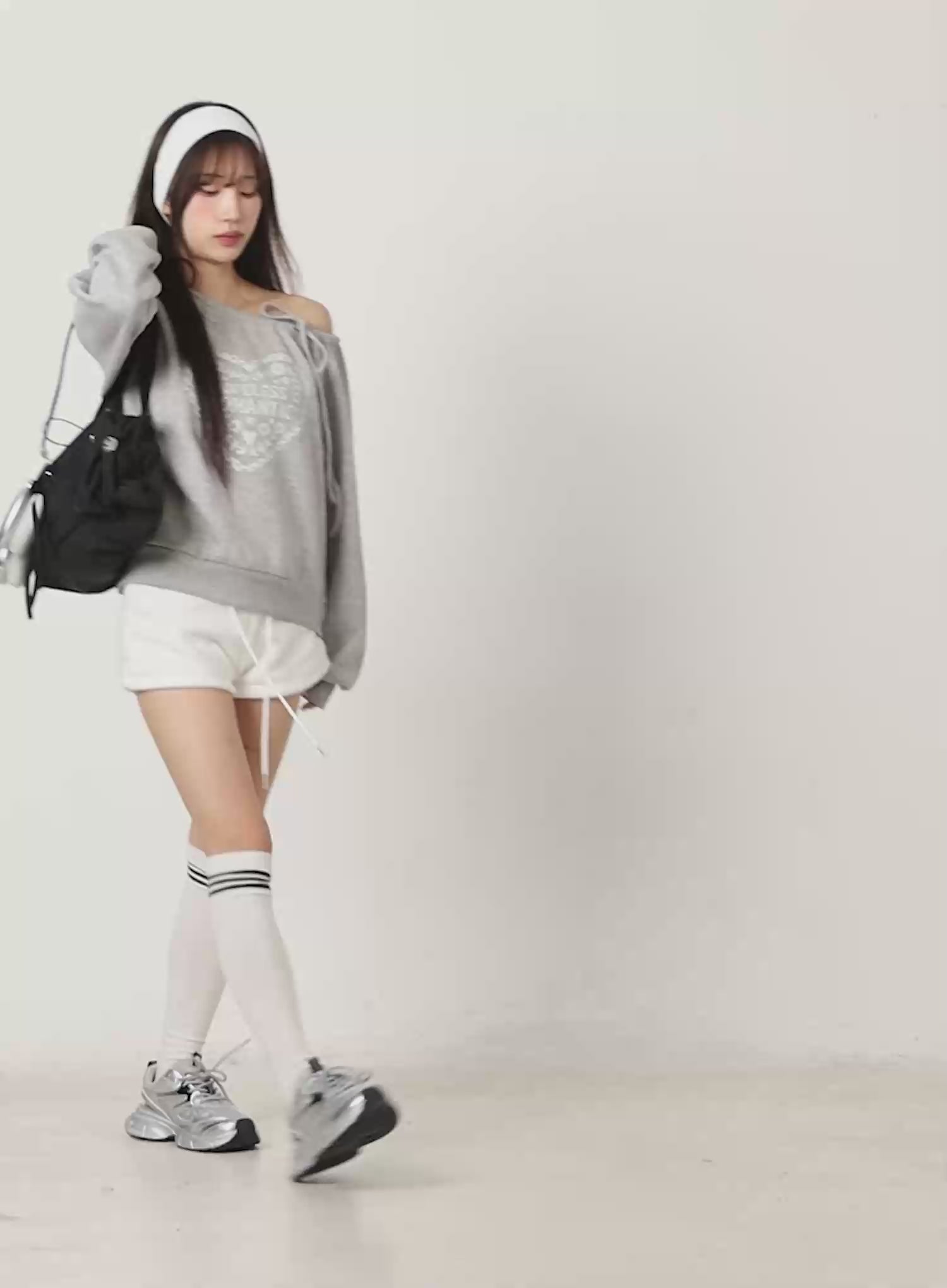 Off-Shoulder Ribbon Sweatshirt IJ521