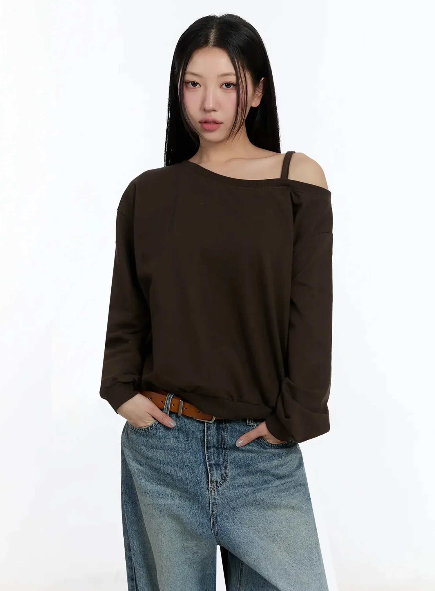 Off-Shoulder Simple Sweatshirt IM509