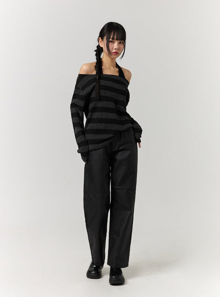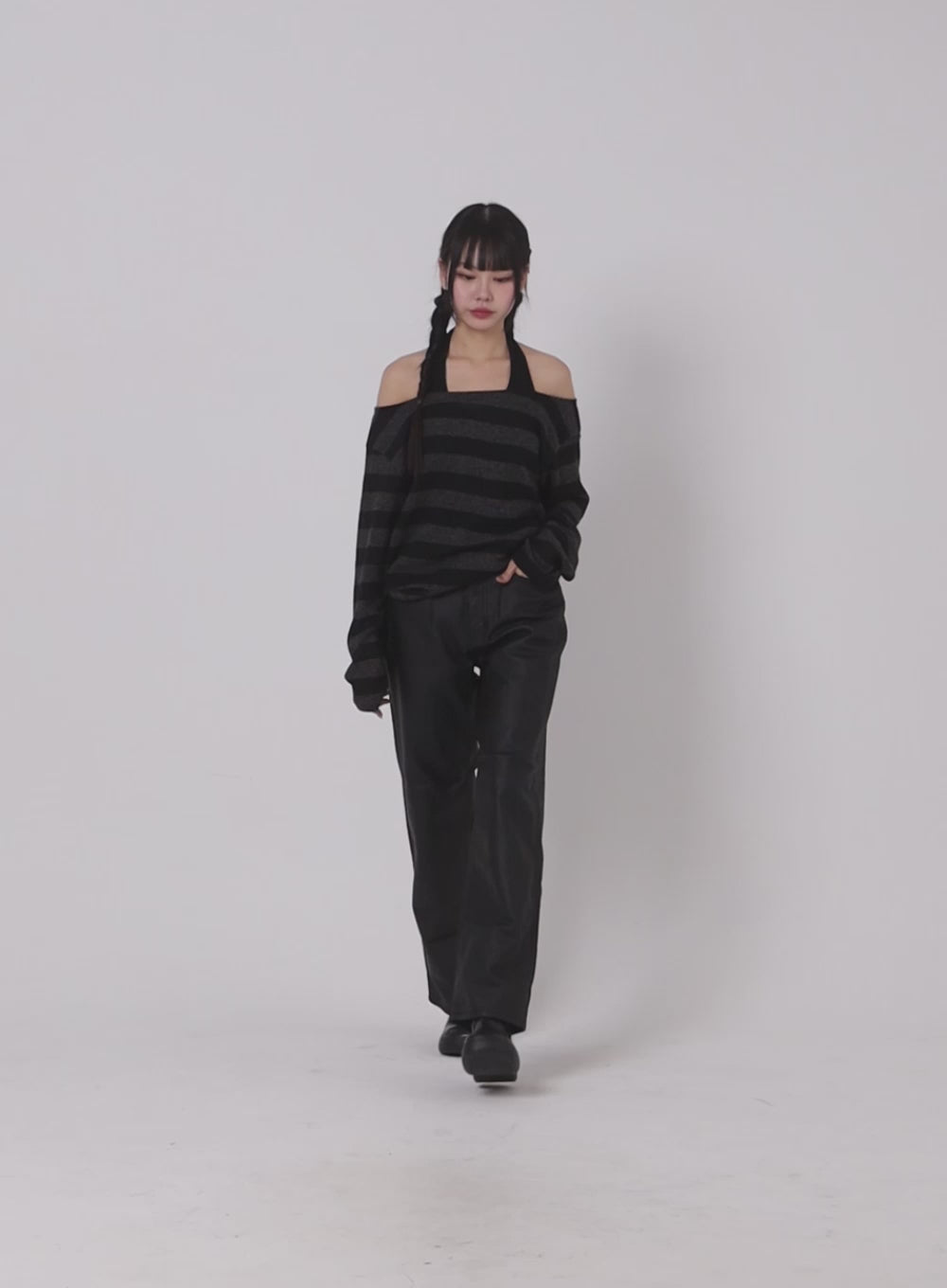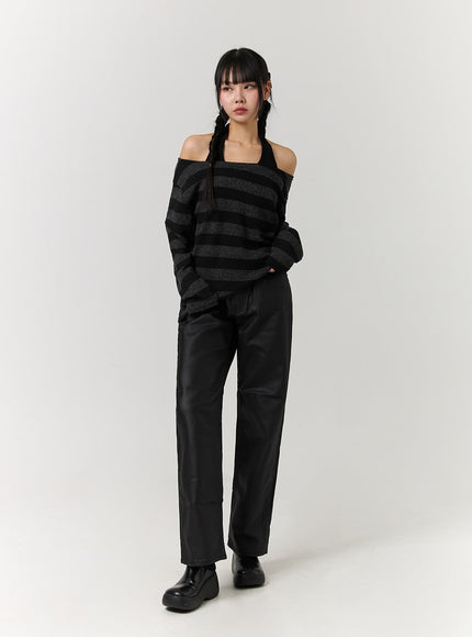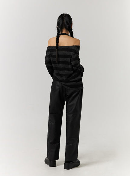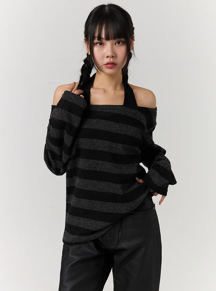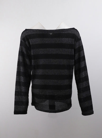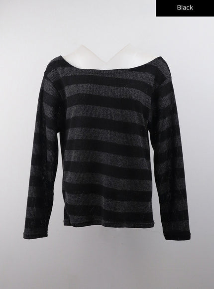 Off-Shoulder Stripe Long Sleeve Top CJ405