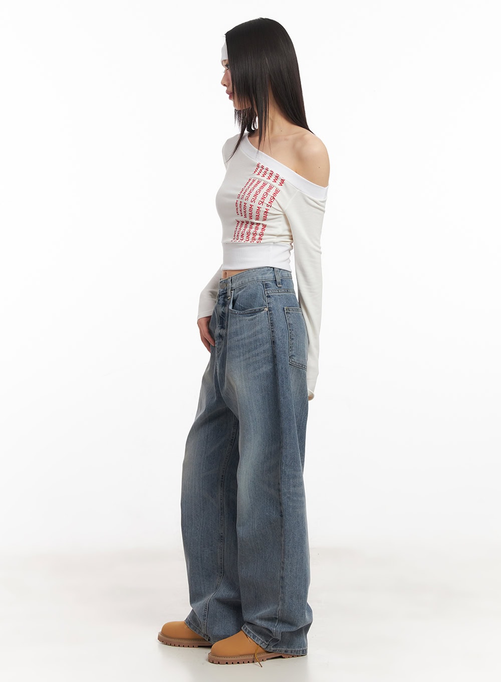 One-Shoulder Wrap Long-Sleeve Crop Top CA522