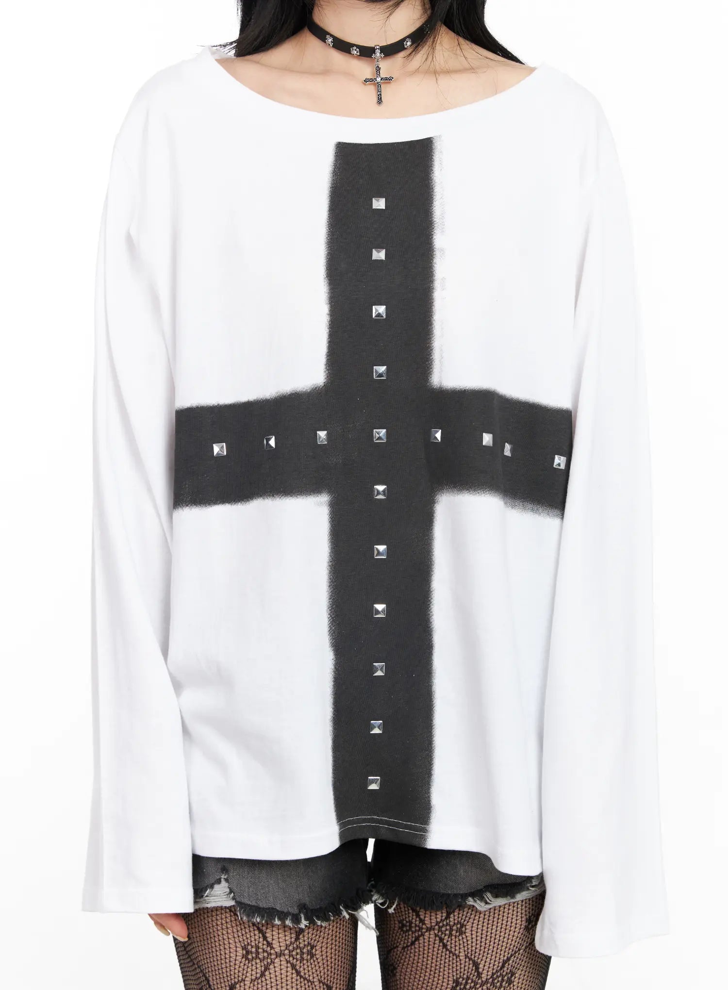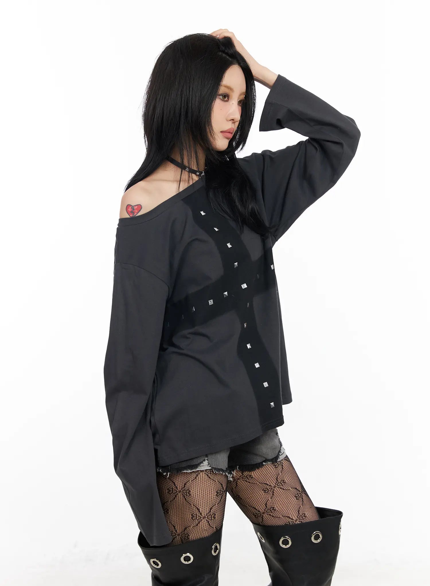 Oversized Studded Off-Shoulder Top CF527