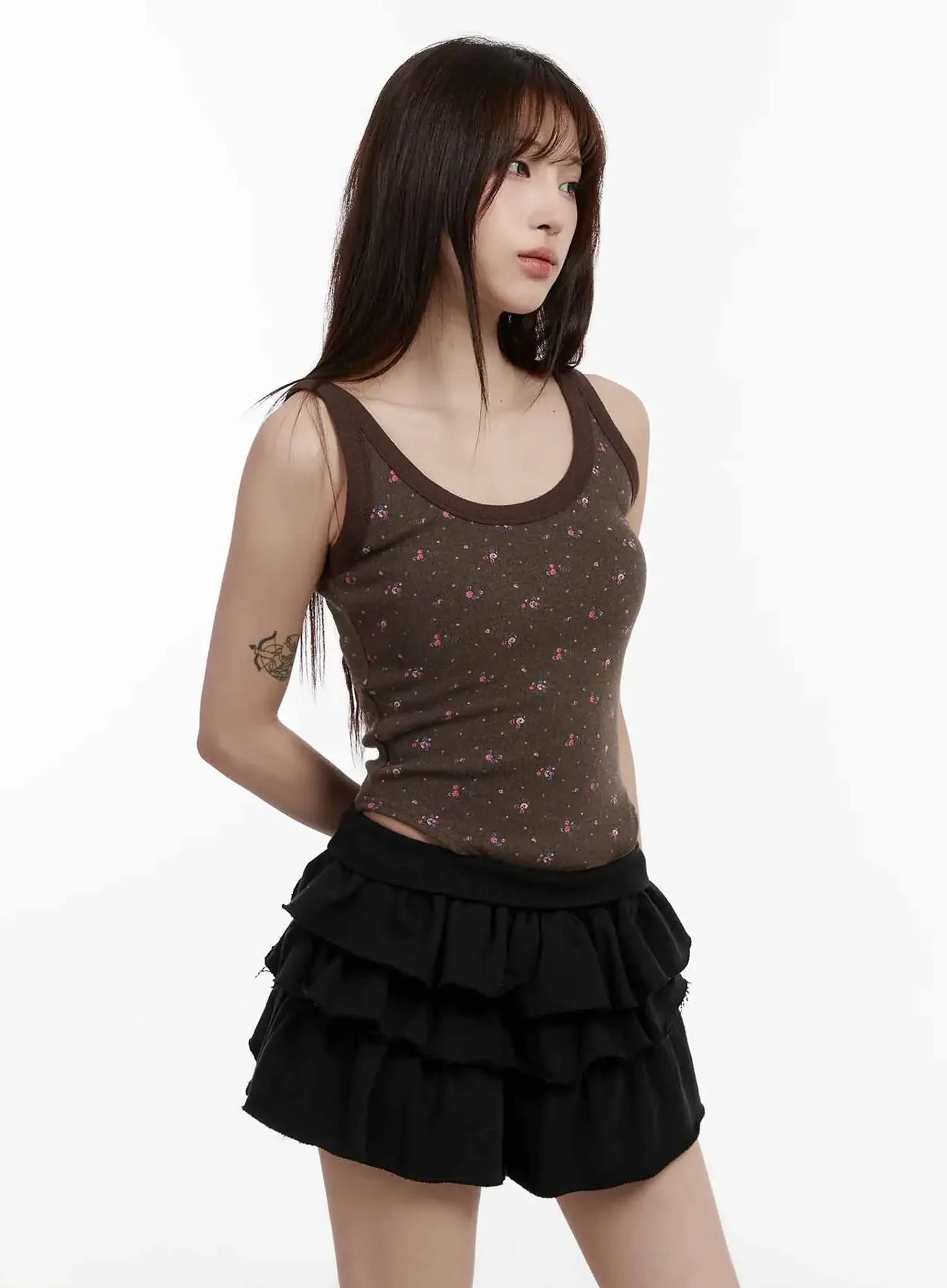 Patterned Fleece Tank Top IJ516