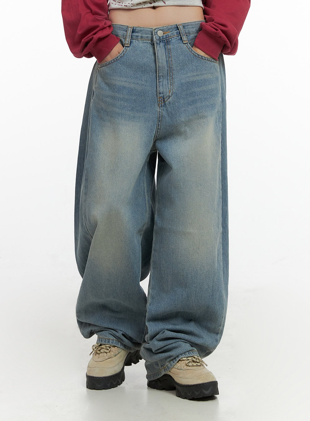 Pearl Casual Washed Loose Fit Denim Jeans CO402