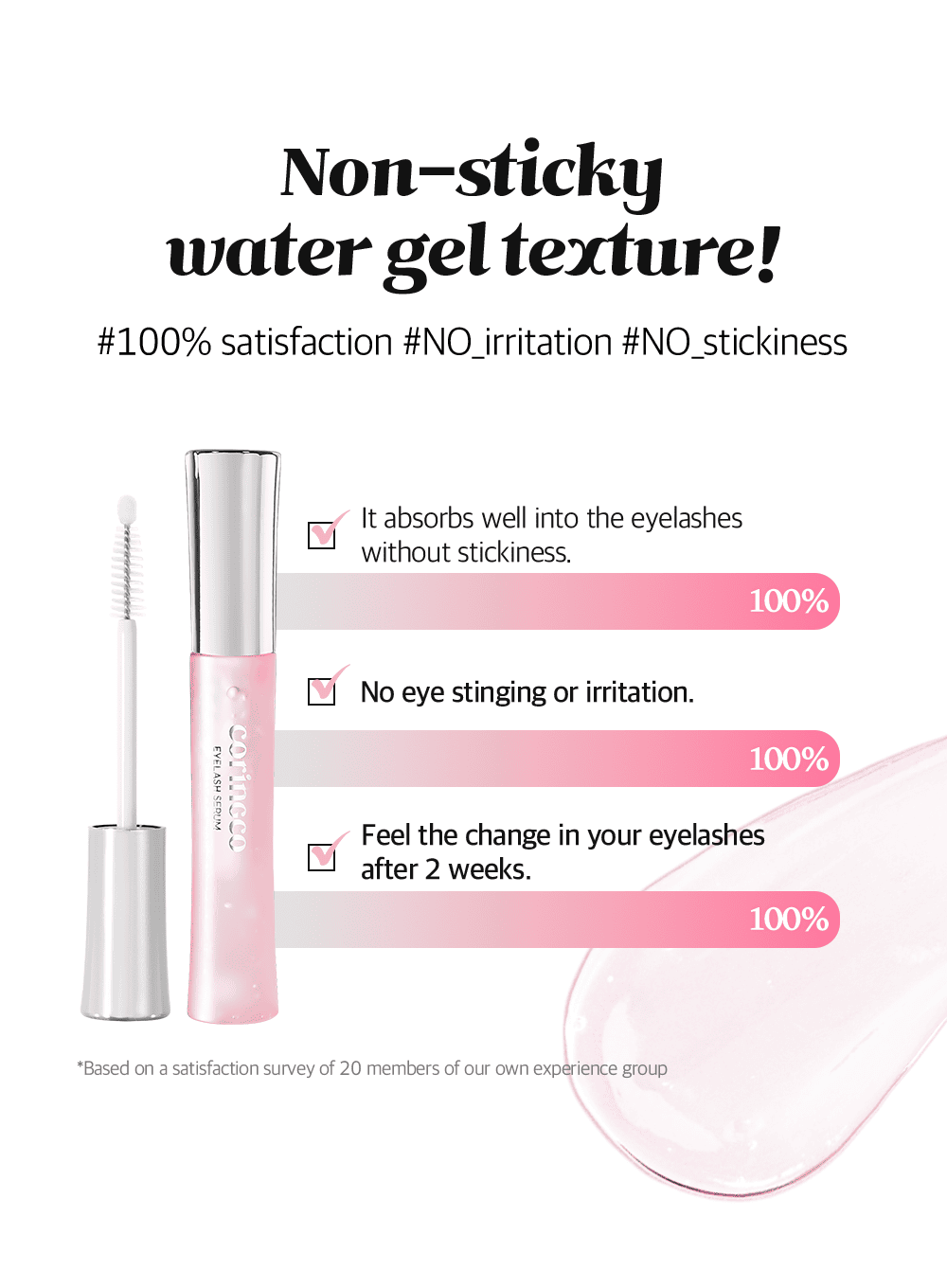 - Hydrolyzed collagen deeply absorbs into the lash roots and surrounding skin, providing essential moisture and elasticity for stronger, healthier lashes.