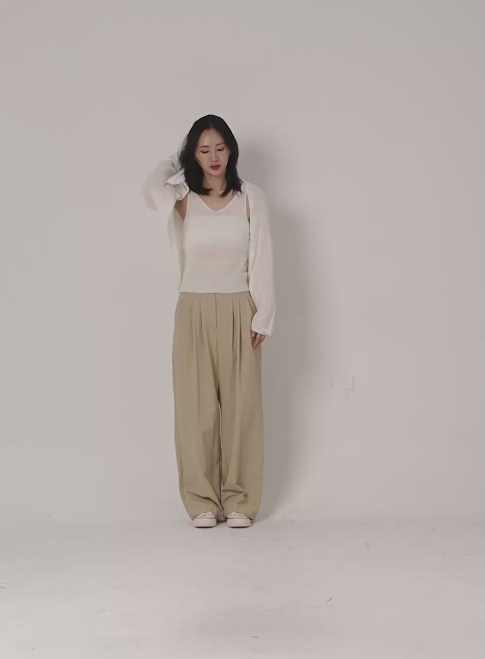 Model is wearing size S and the color Beige.