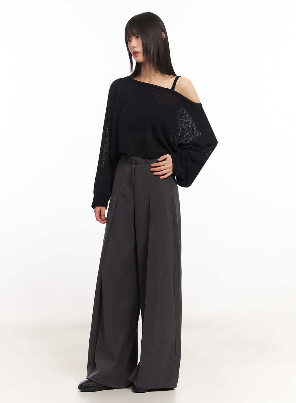 Pintuck Wide-Leg Slacks IY502