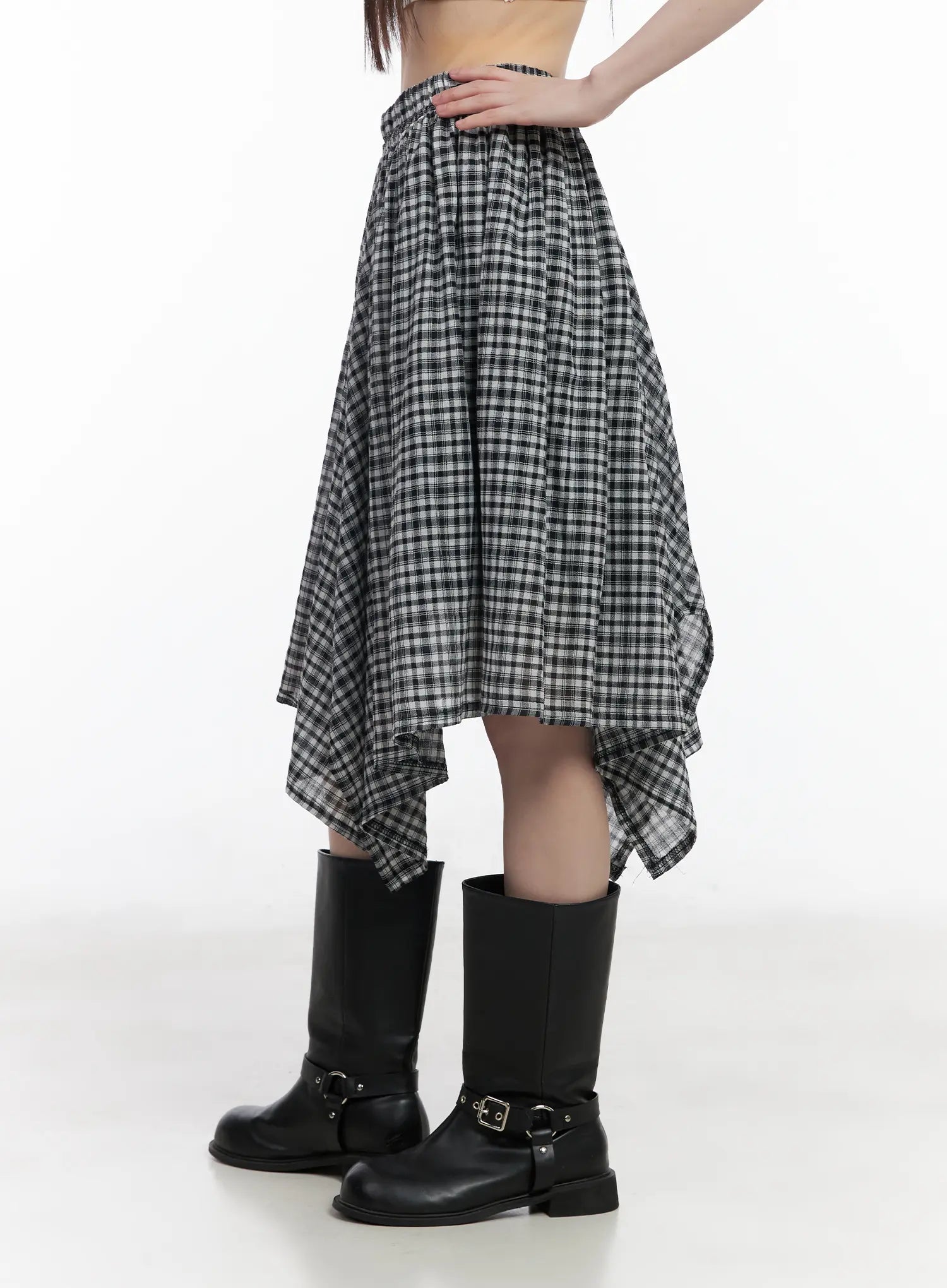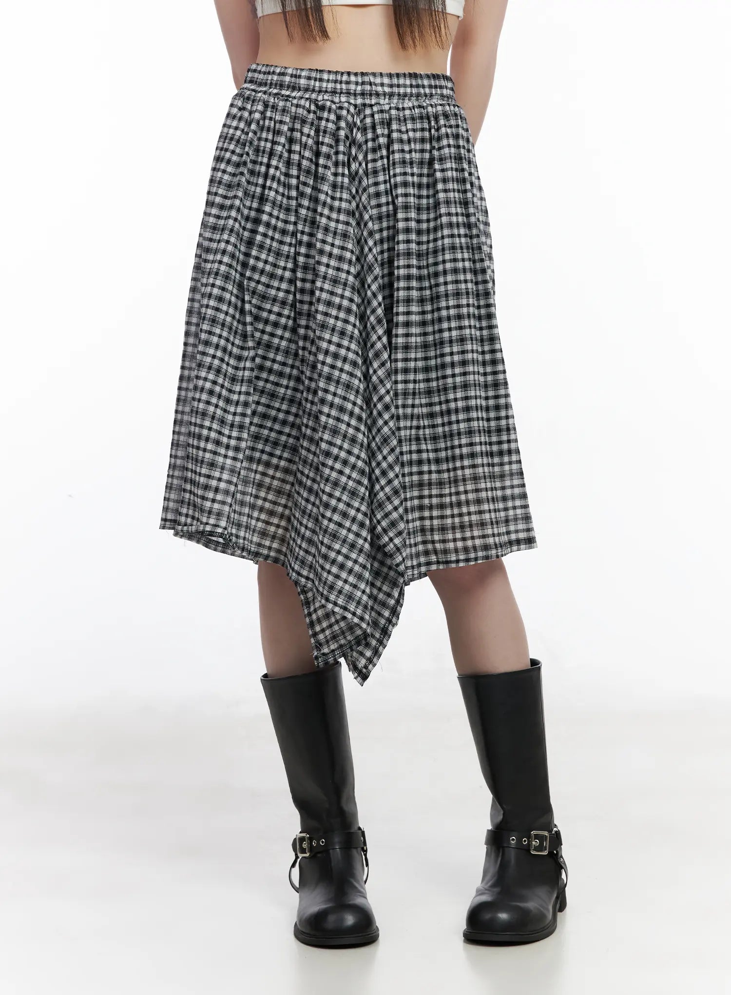 Plaid Asymmetrical Midi Skirt CM524