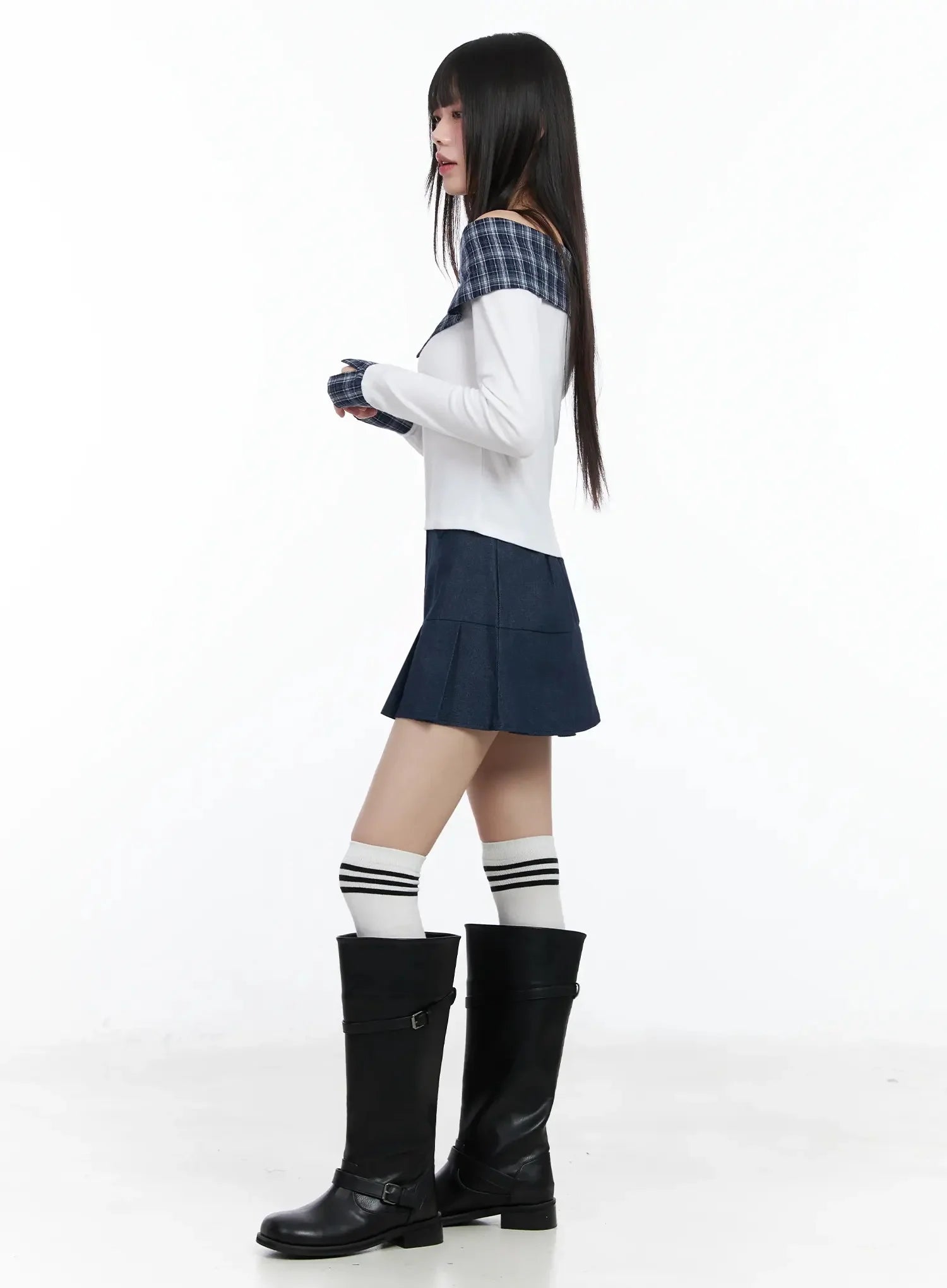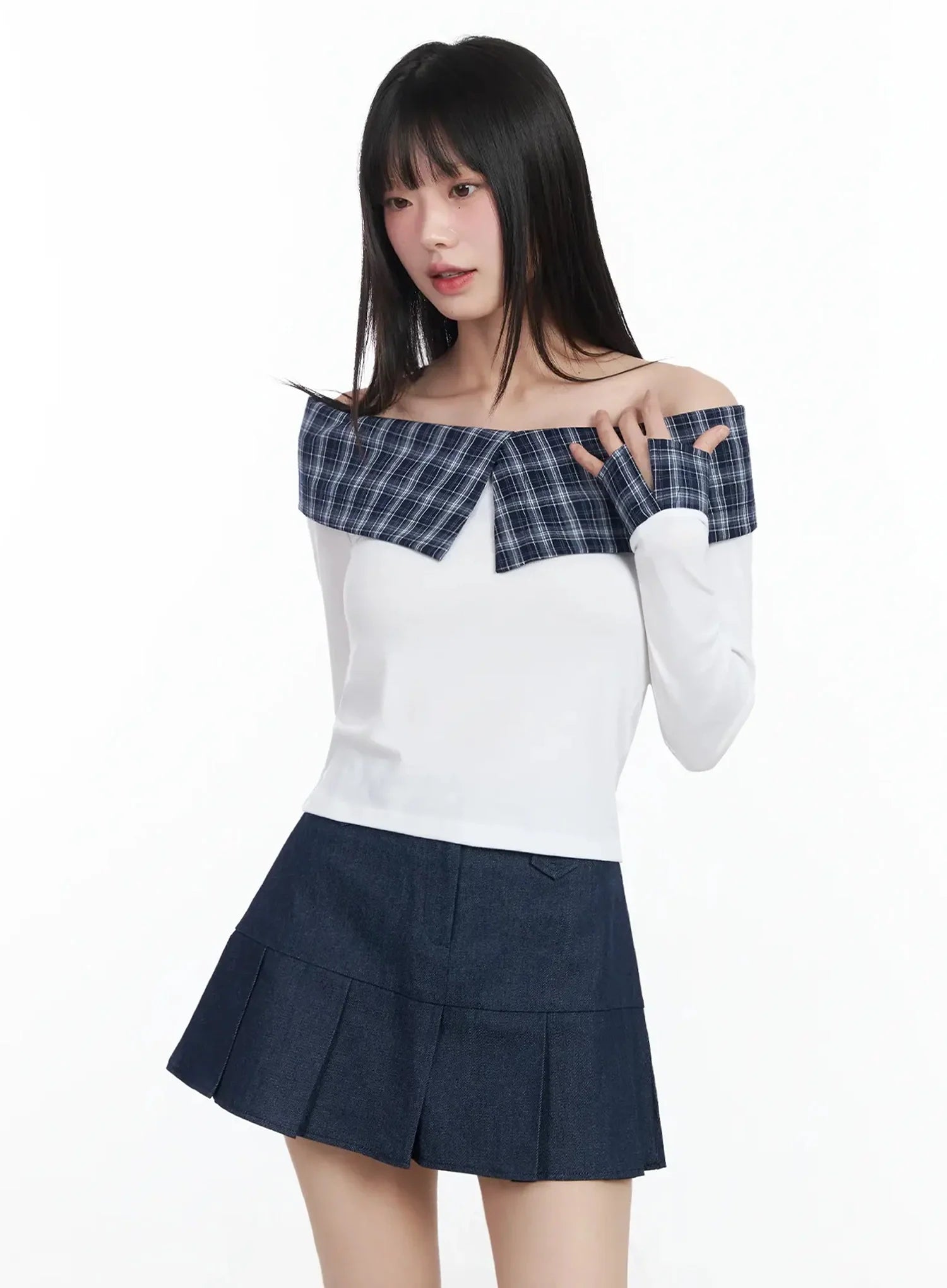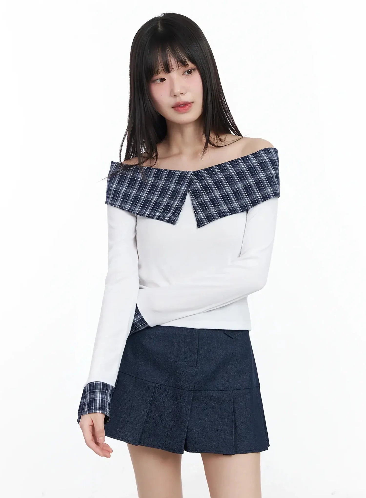 Plaid Off-Shoulder Long Sleeve Top IM523