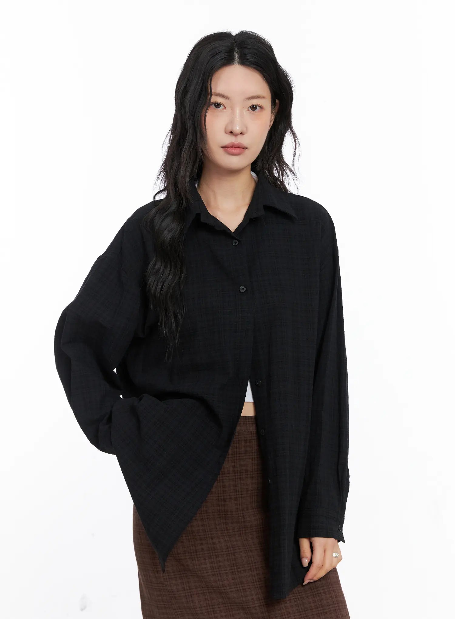 Plaid Oversized Long Sleeve Shirt CO508