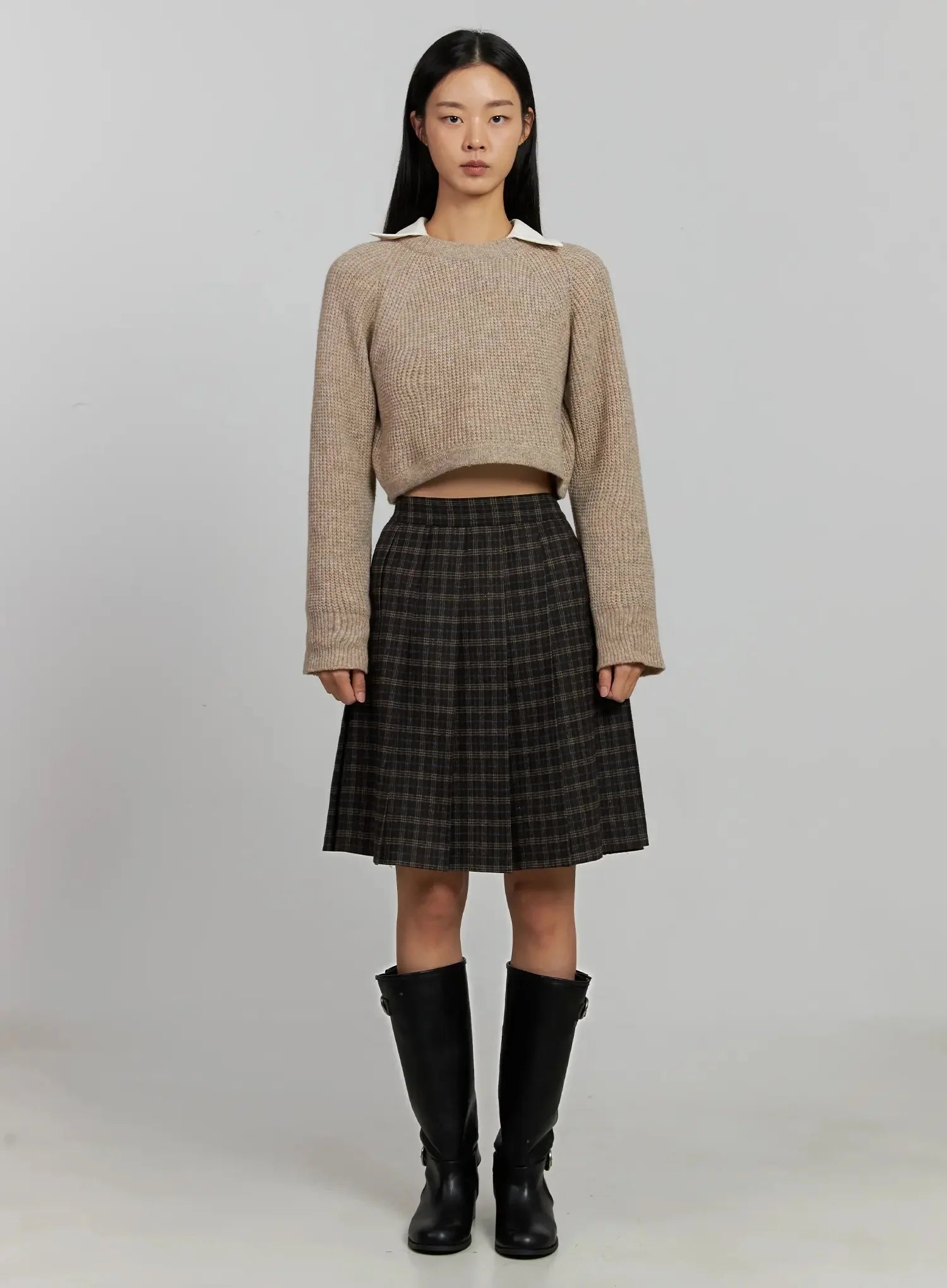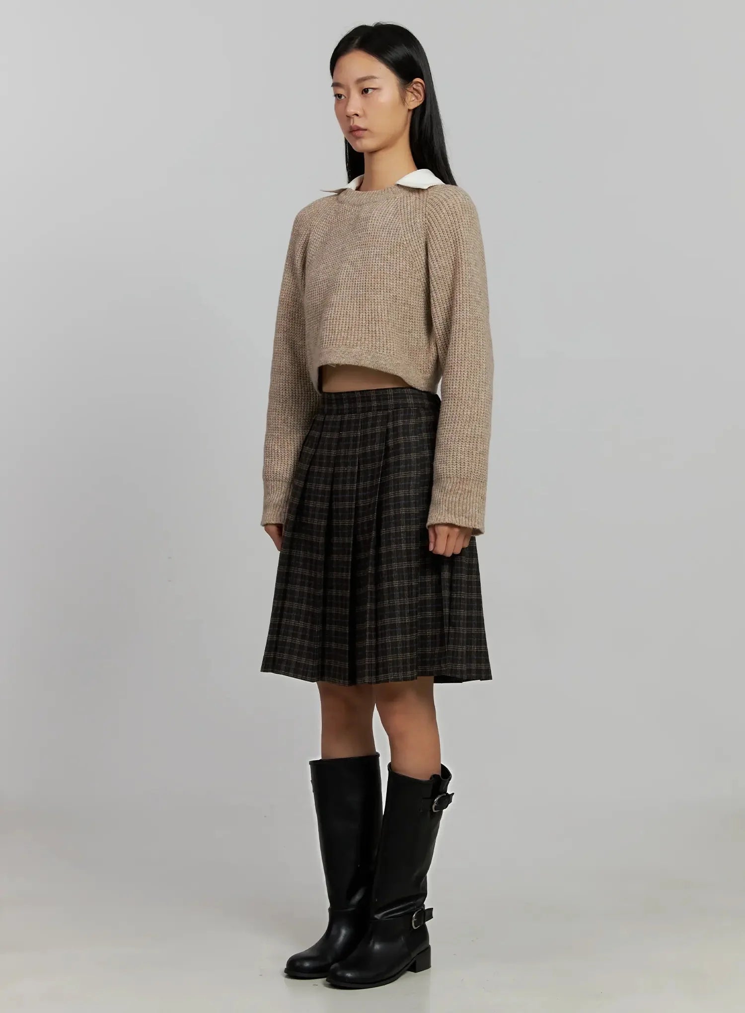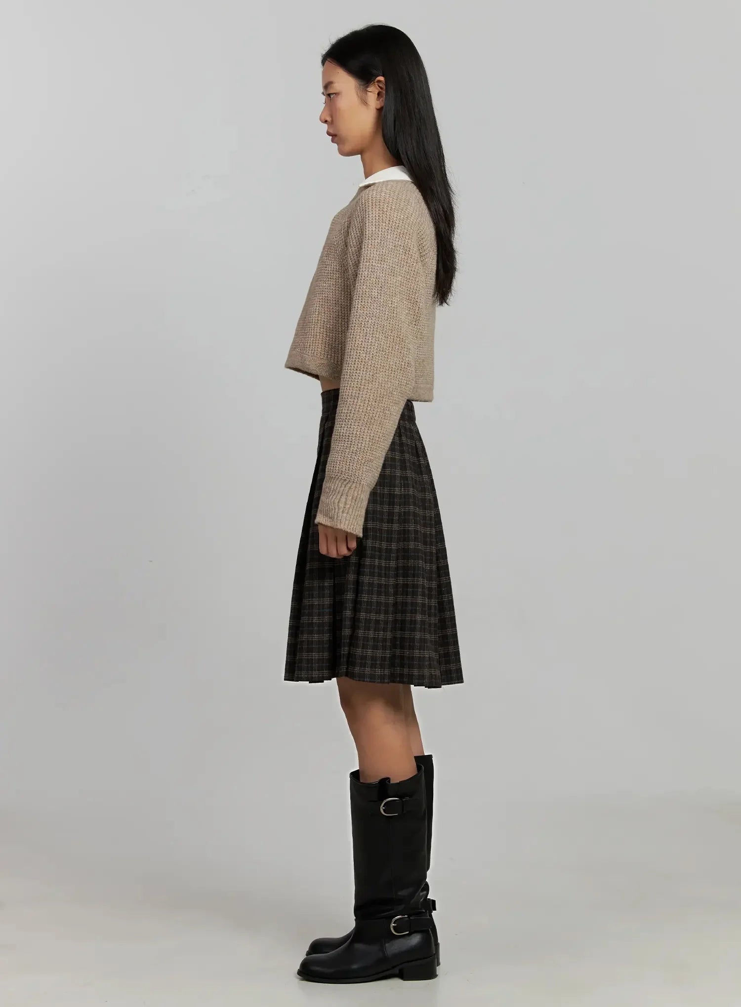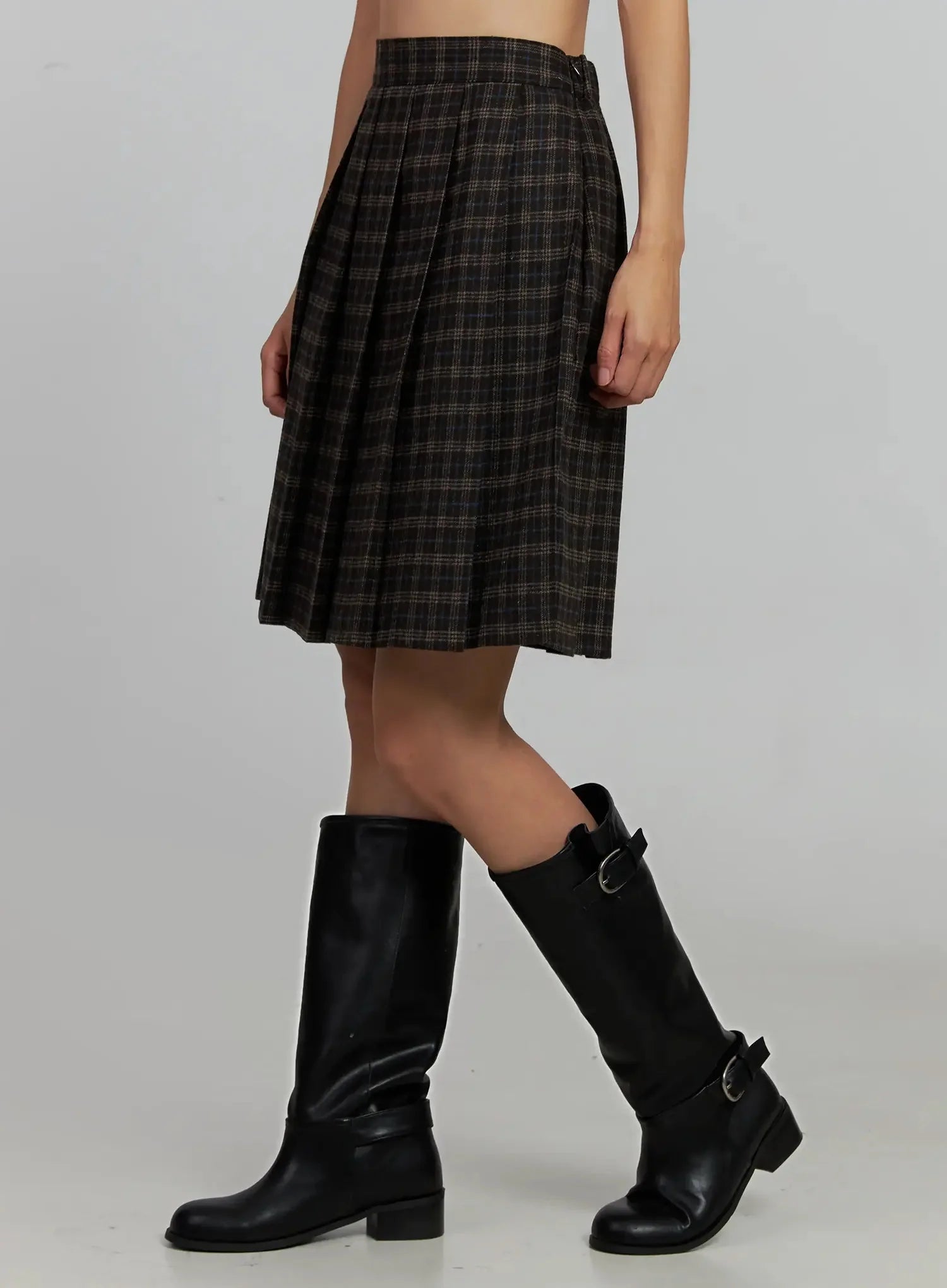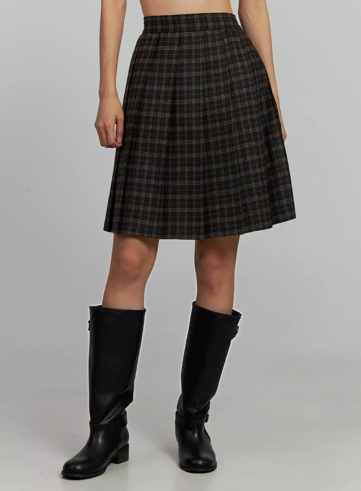 Plaid Pleated Midi Skirt IJ502