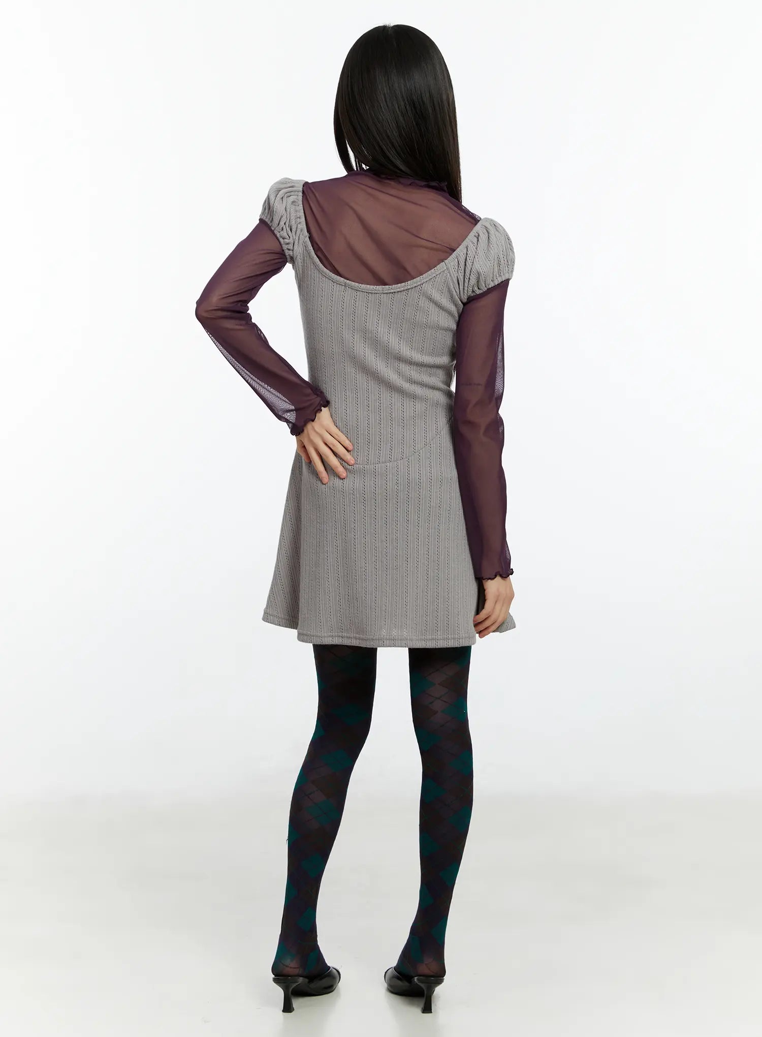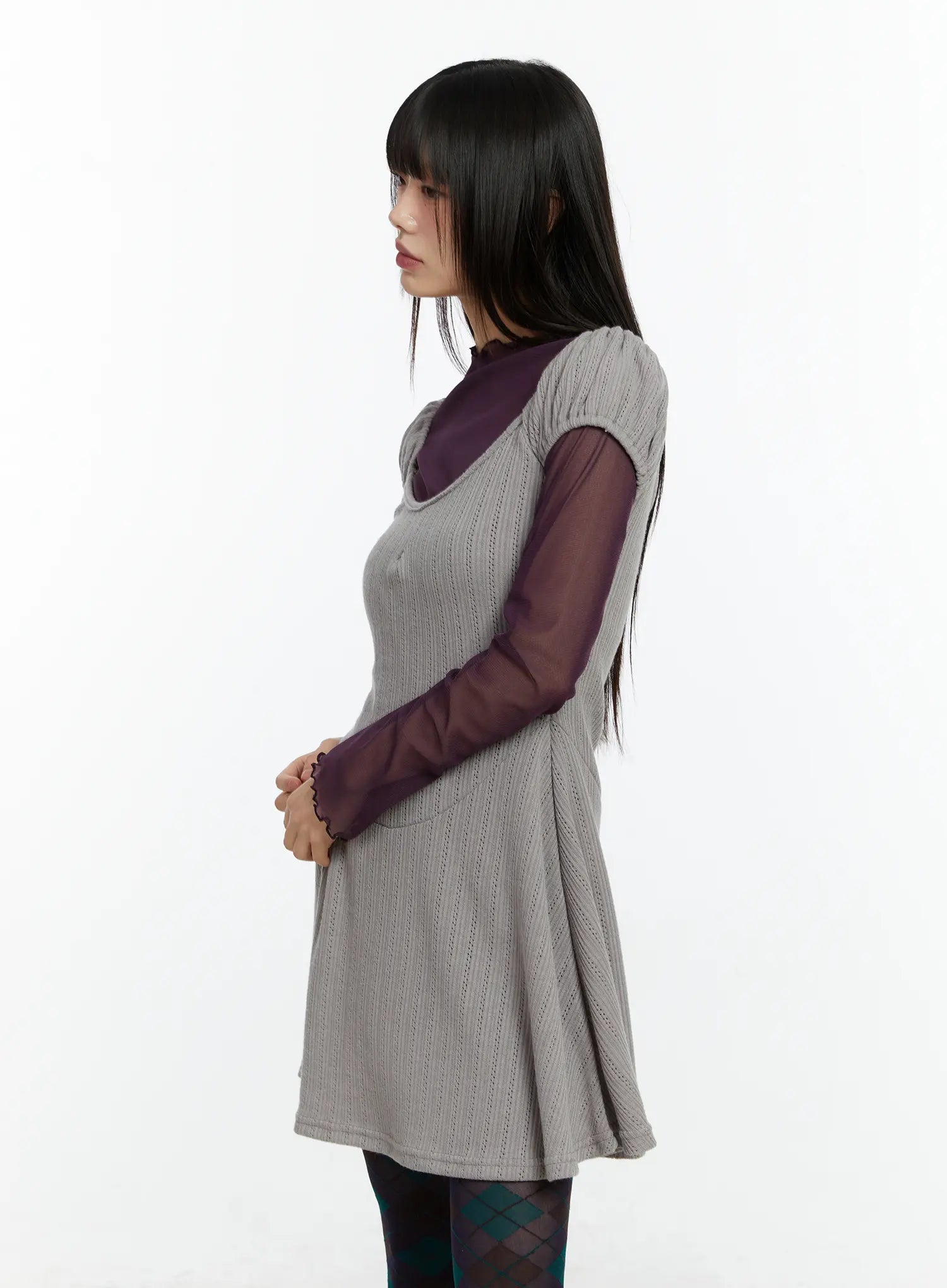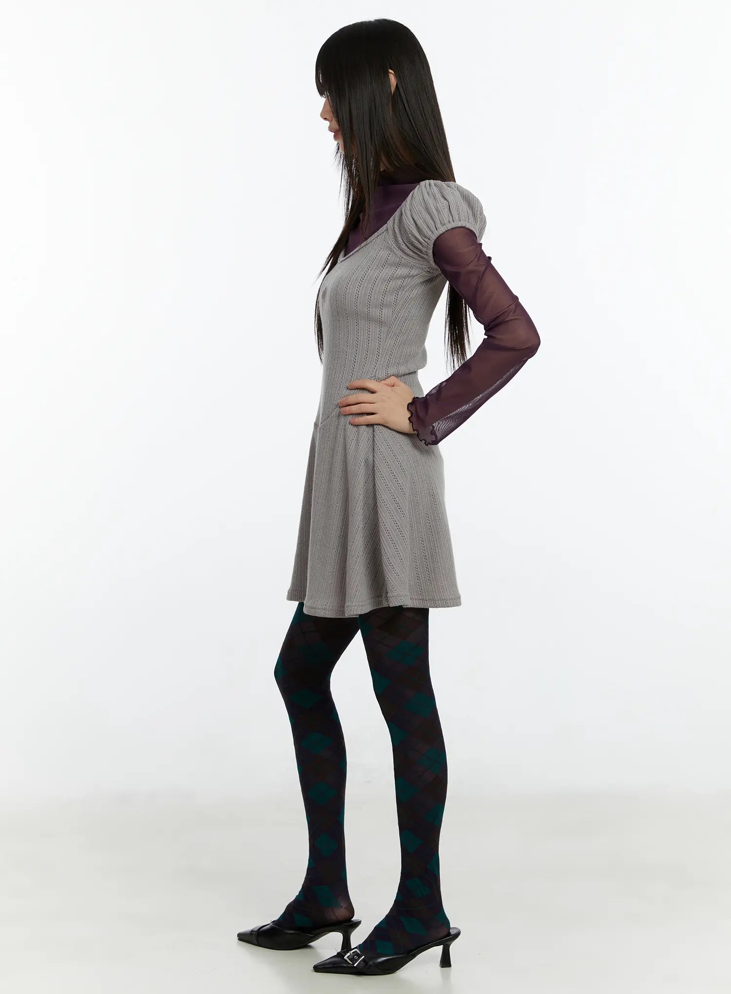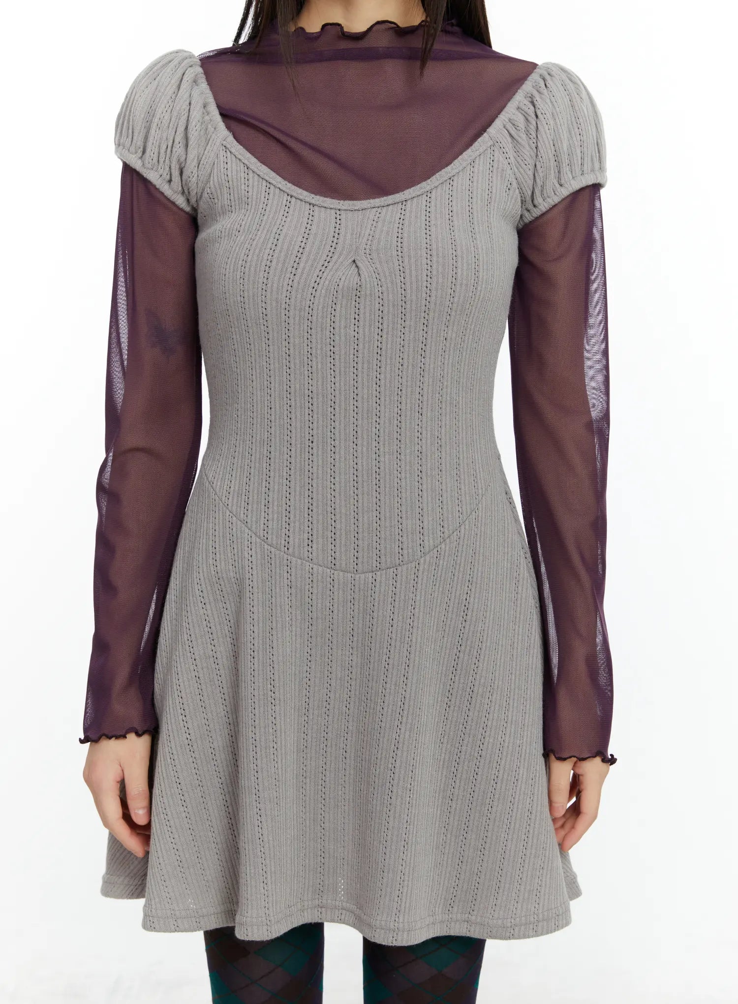 Pointelle Puff Sleeve Flare Mini Dress CF509