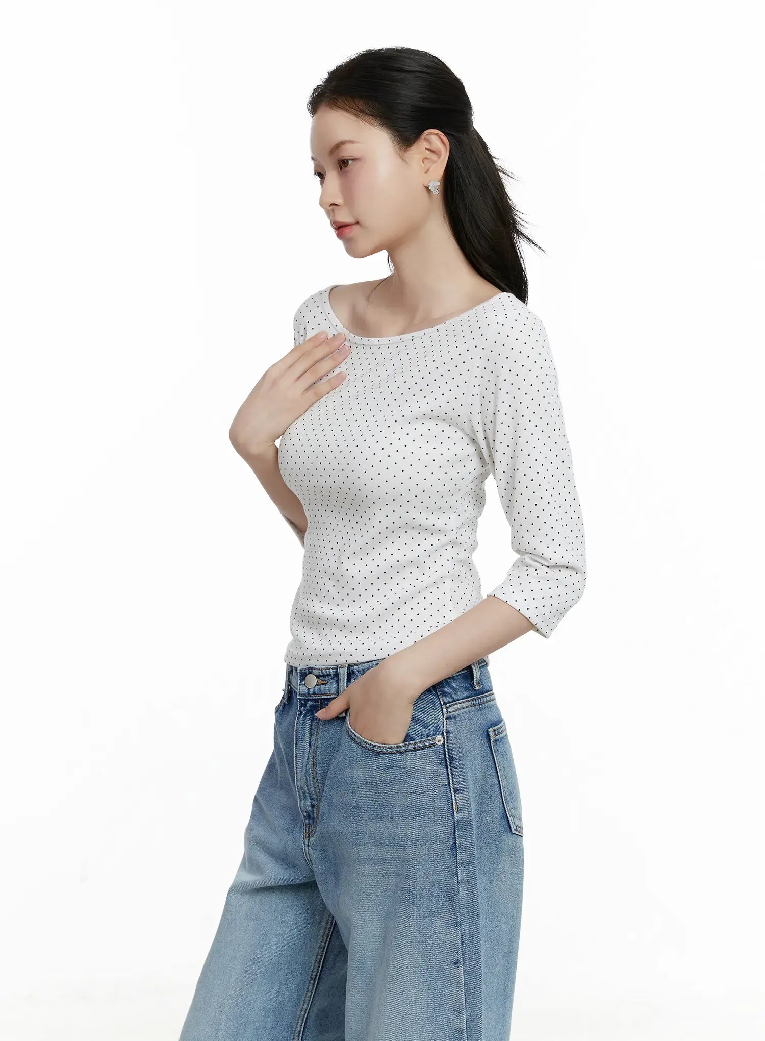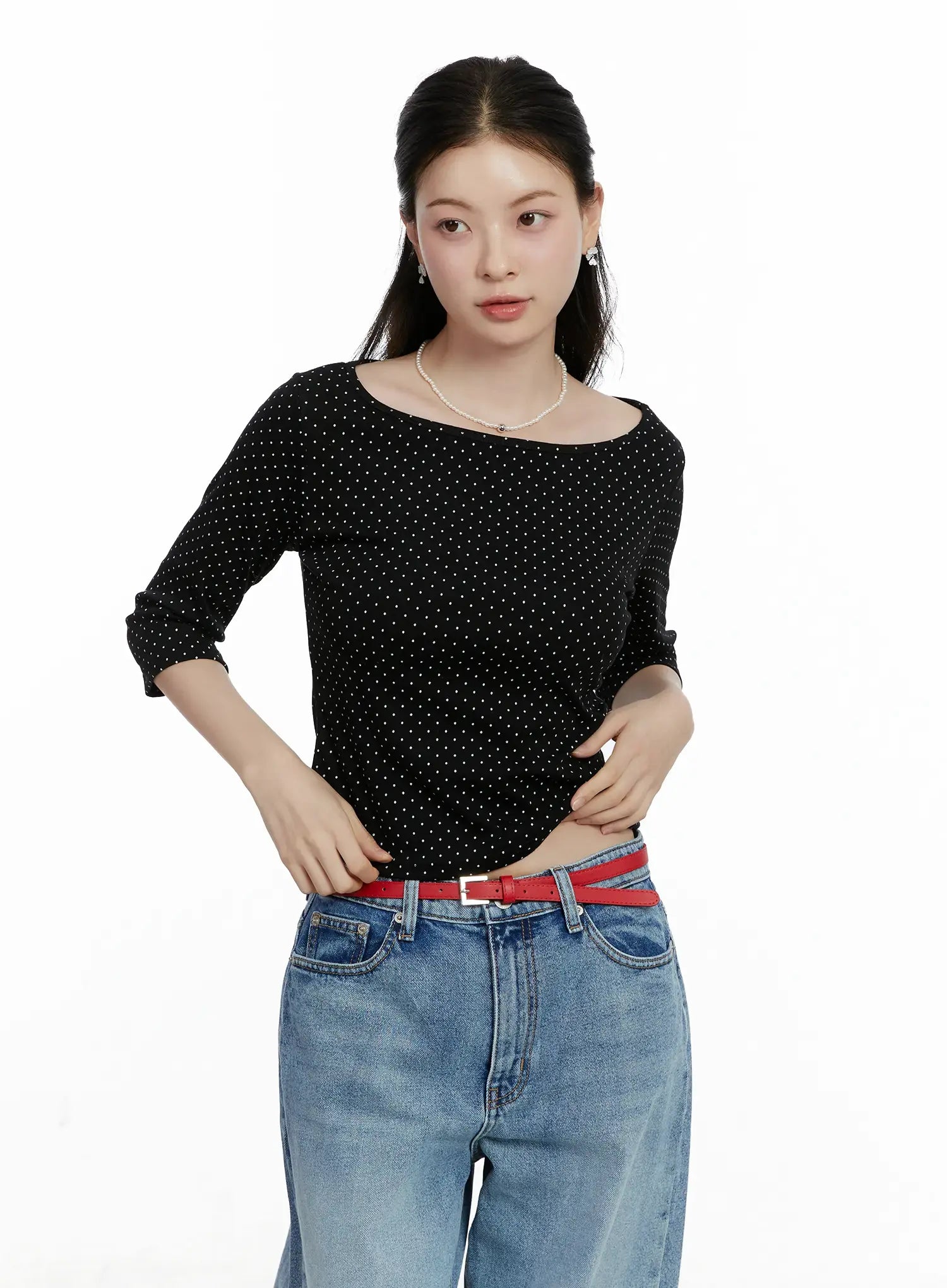 Polka Dot Boat Neck Top F502