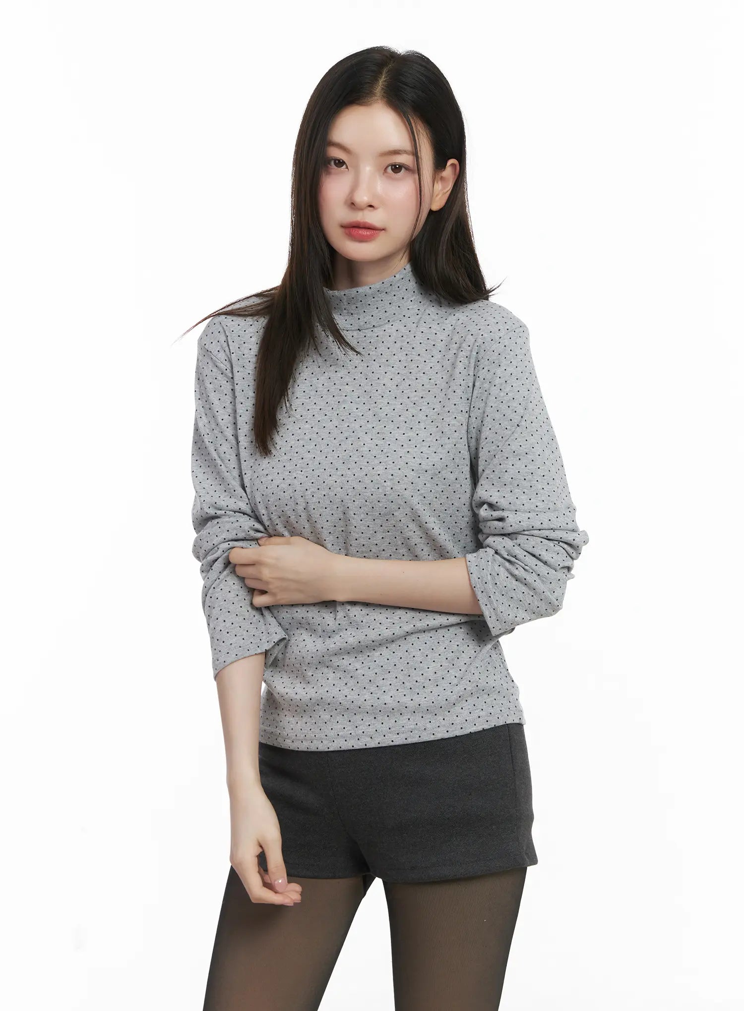 Polka Dot Mock Neck Top CJ506