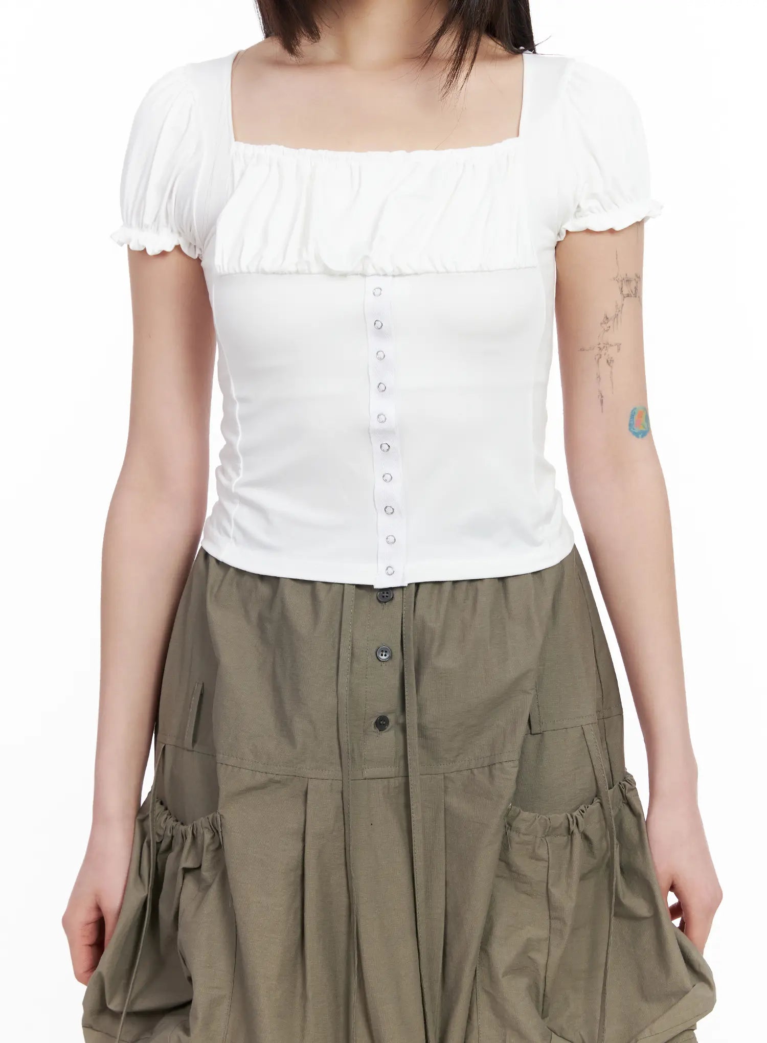 Puff-Sleeve Crop Short-Sleeve Blouse CM512