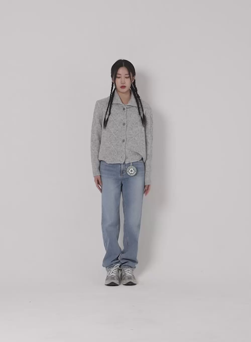 Recycled Polyester Collared Cable Knit Cardigan CD314