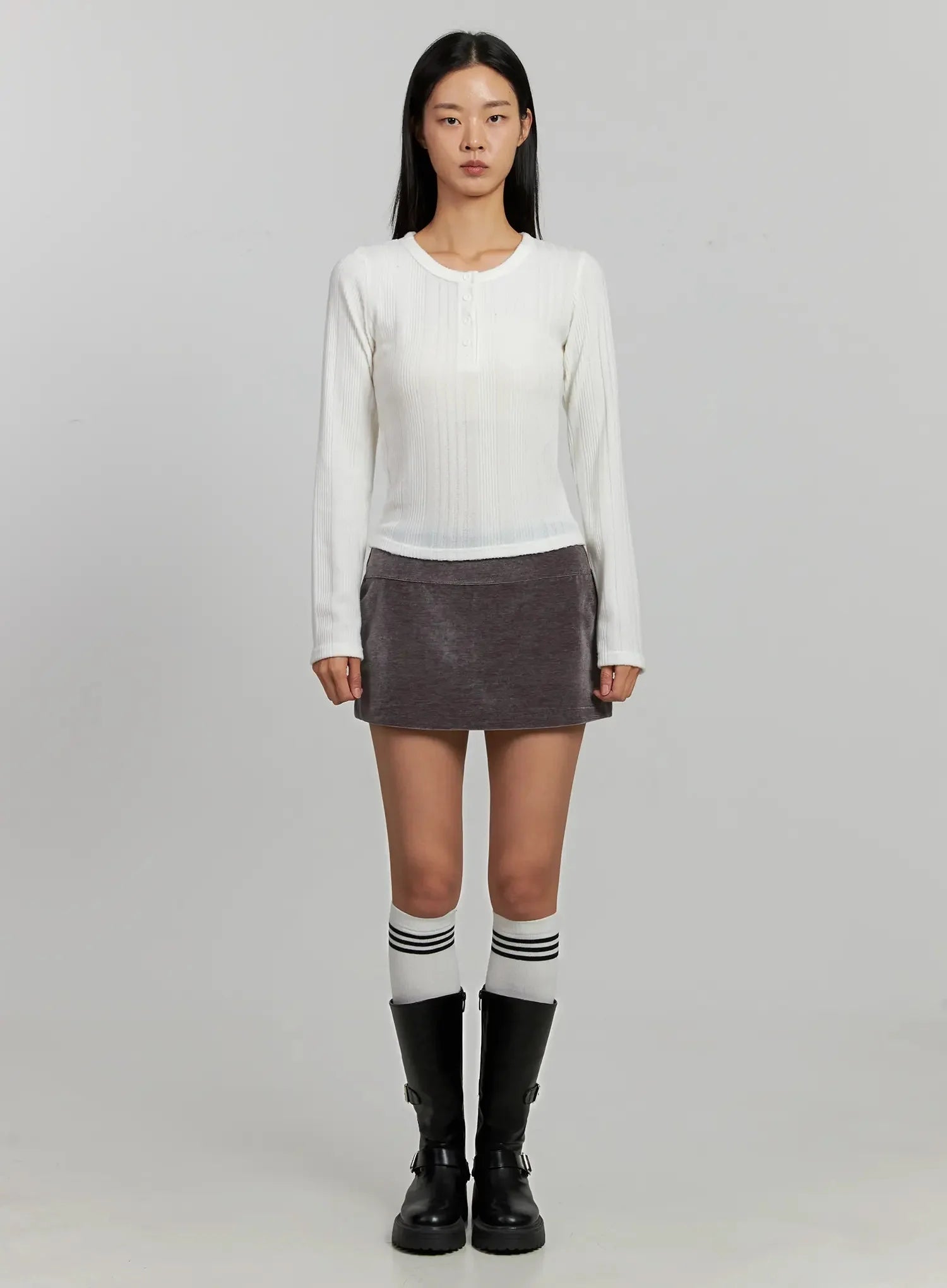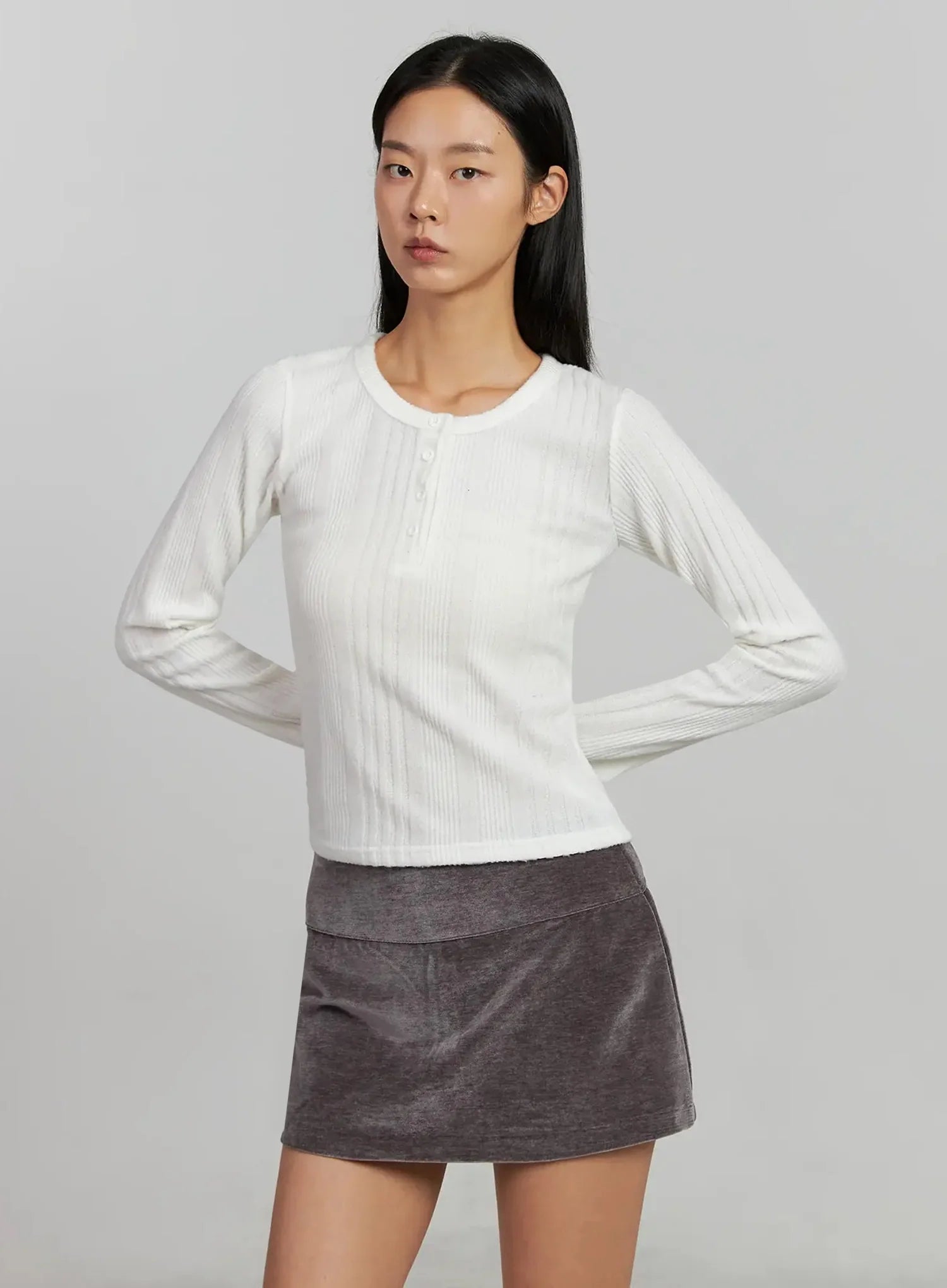 Ribbed Henley Long Sleeve Top IJ502