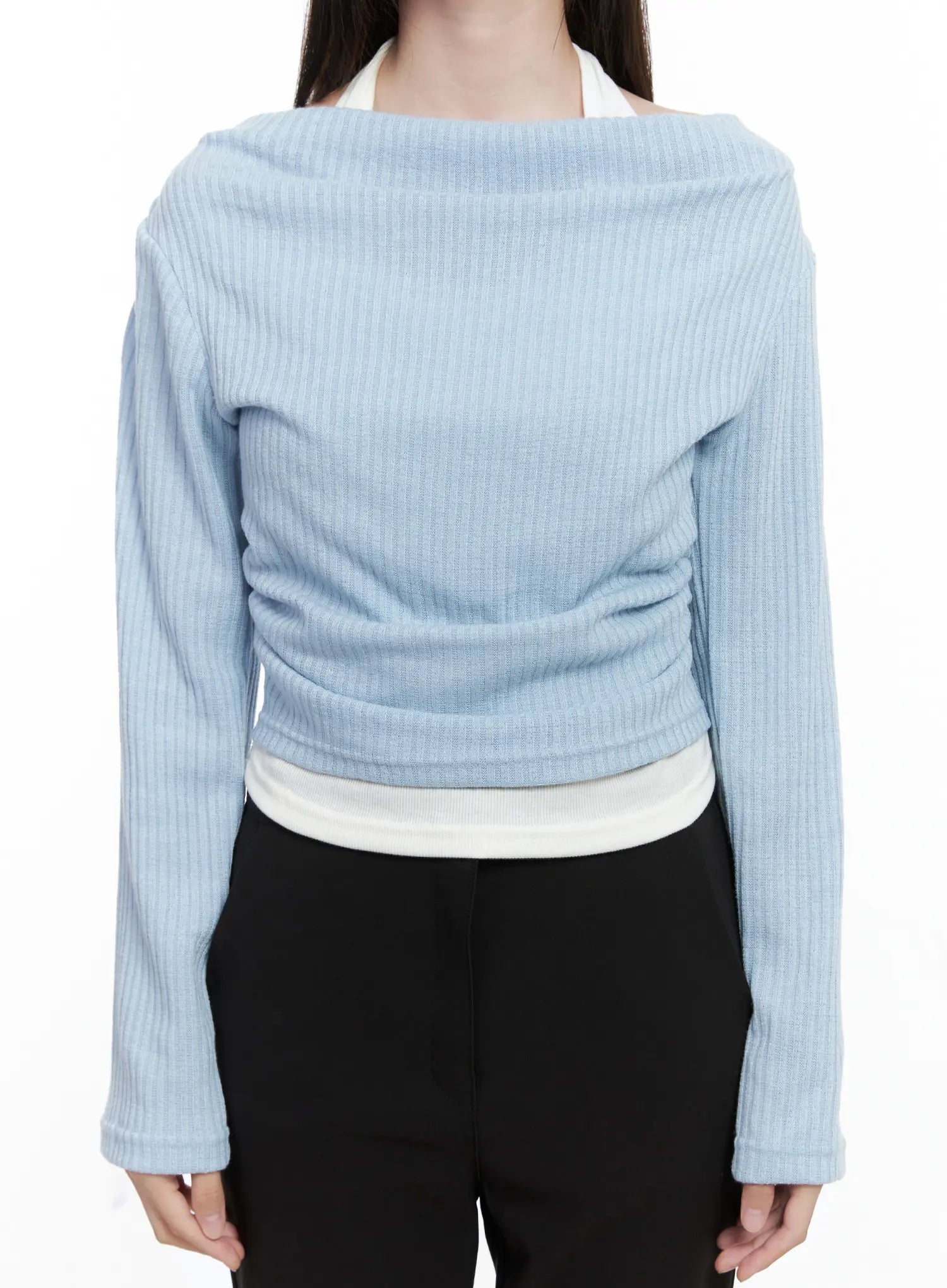 Ribbed Knit Off-Shoulder with Halter Top CO503