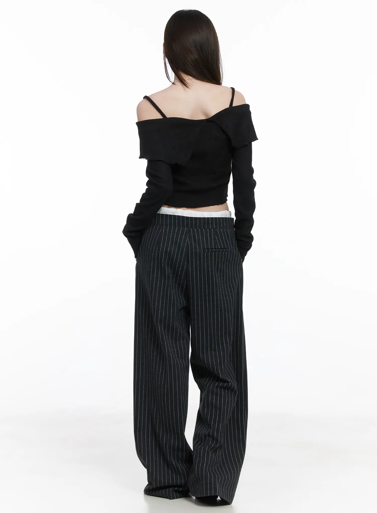 Ribbed Off-Shoulder Crop Cardigan CJ506