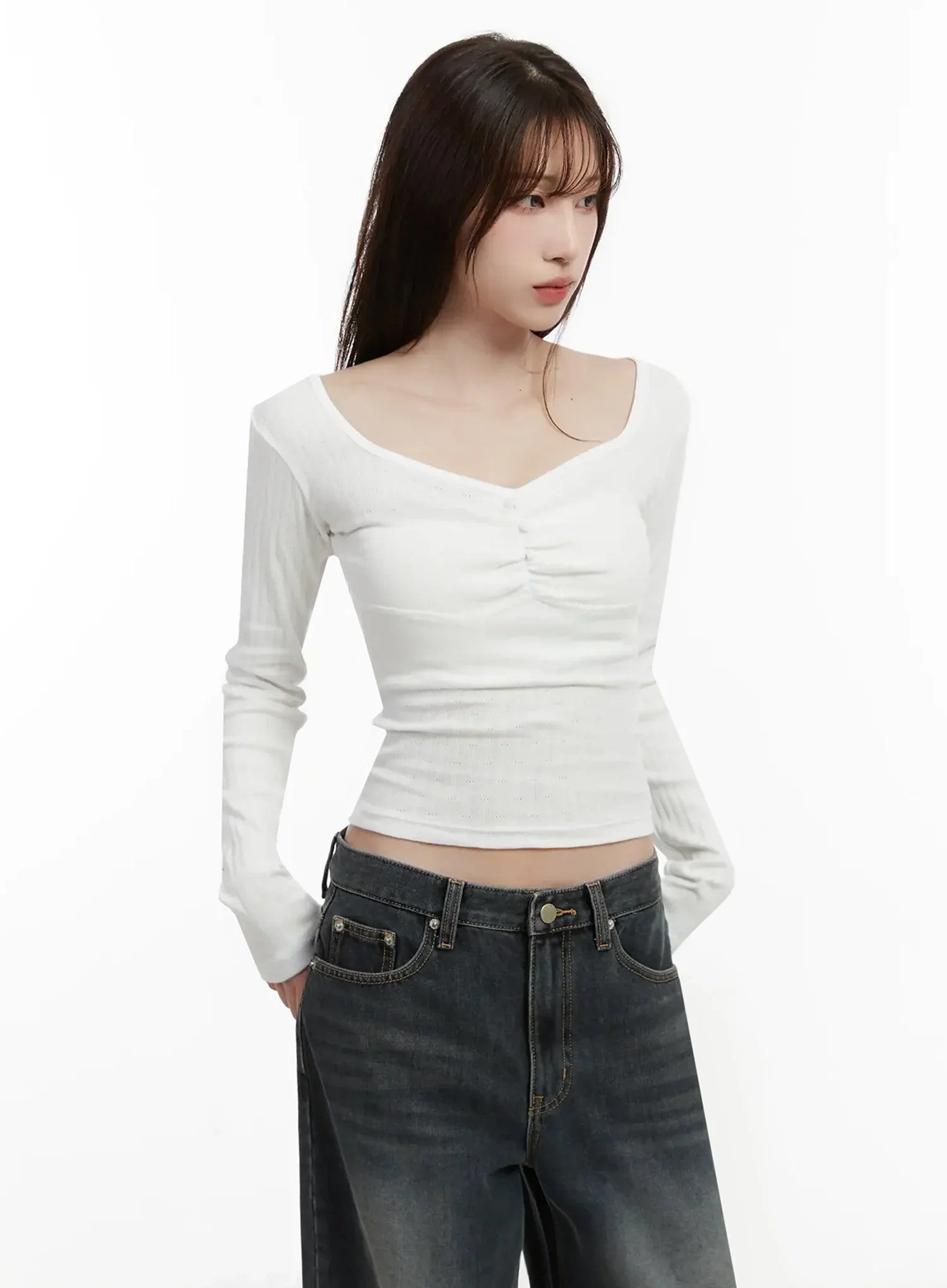 Ribbed Shirring Top IJ521