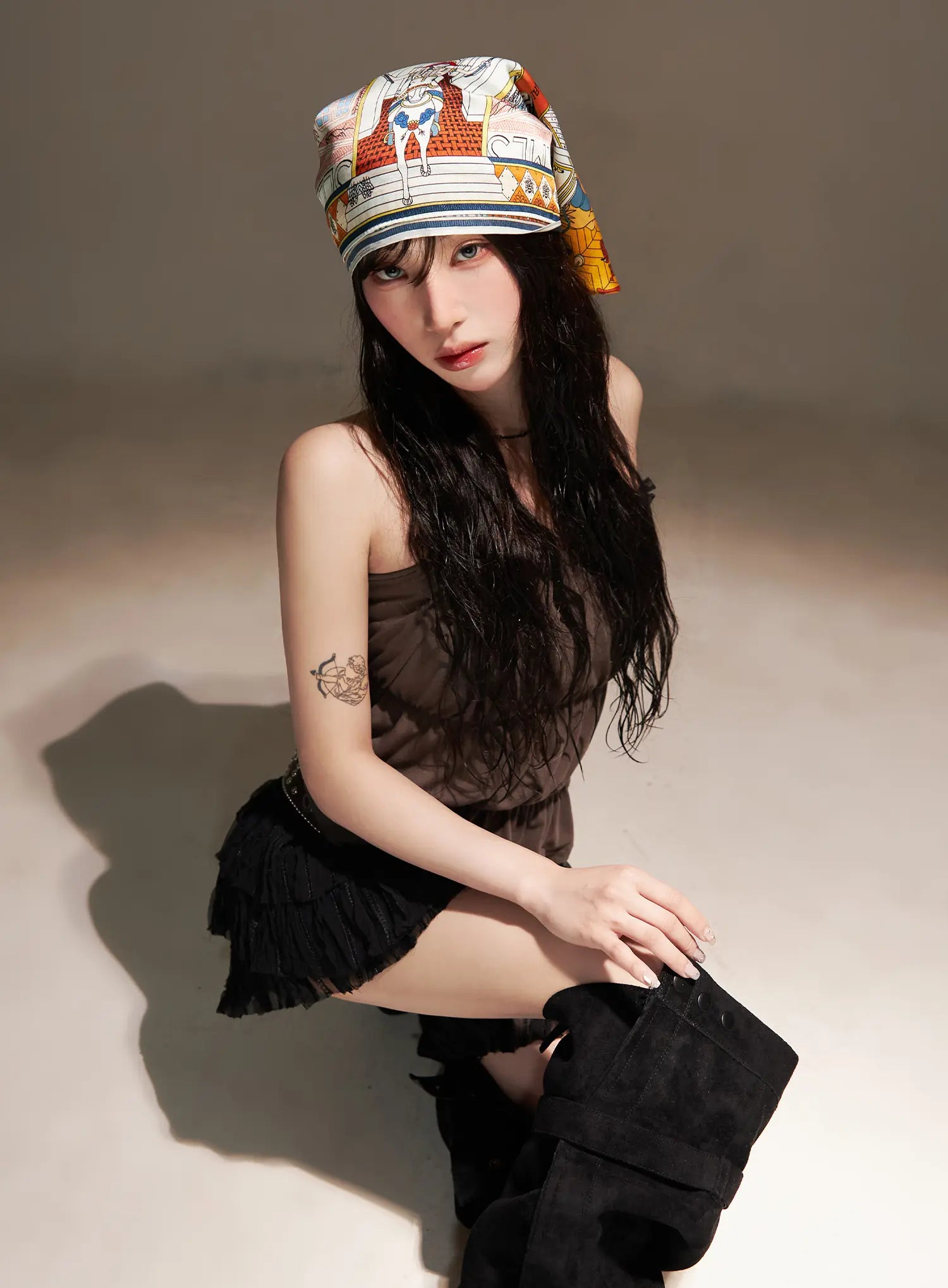 Model is wearing size S/M and the color Dark brown.