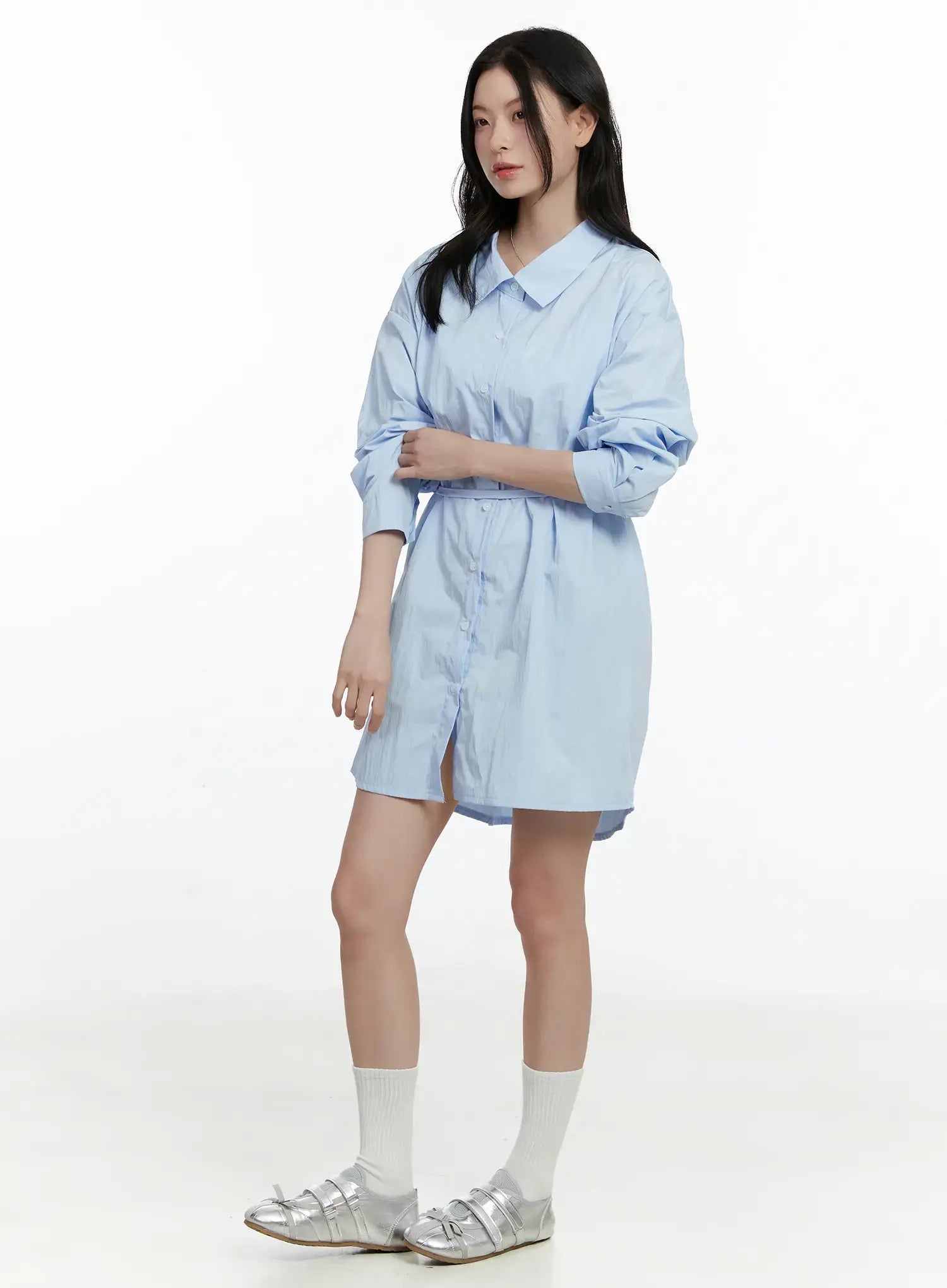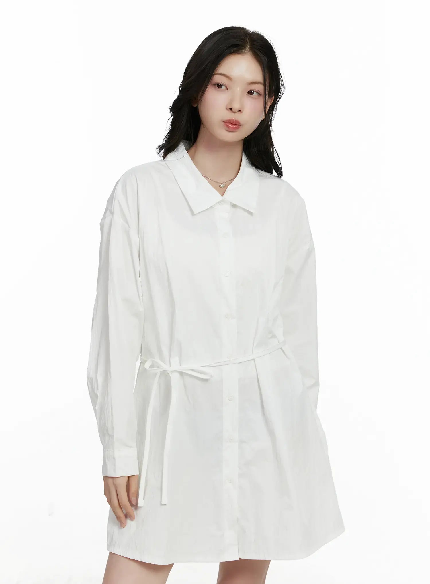 Ribbon Waist Shirt Dress F502