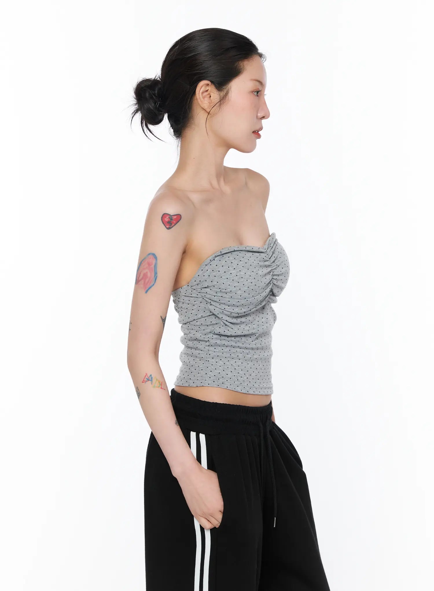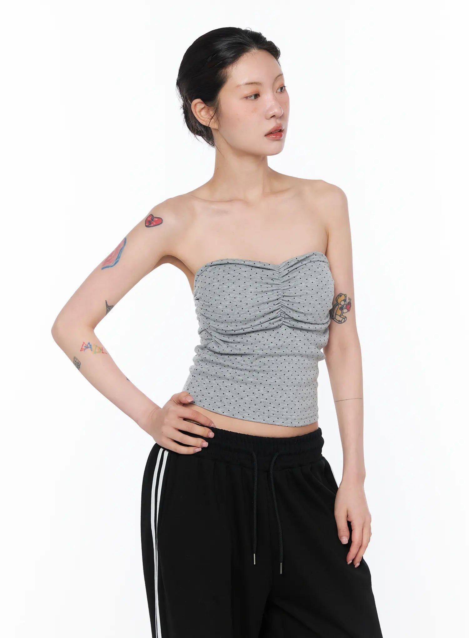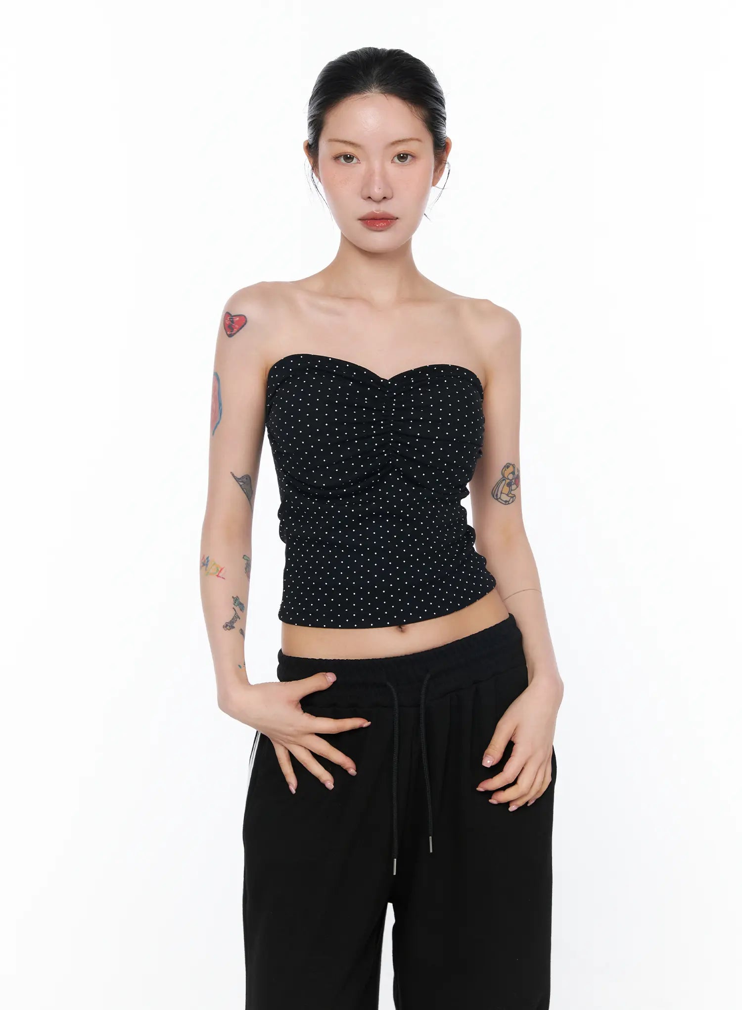 Ruched Polka Dot Strapless Top CA527