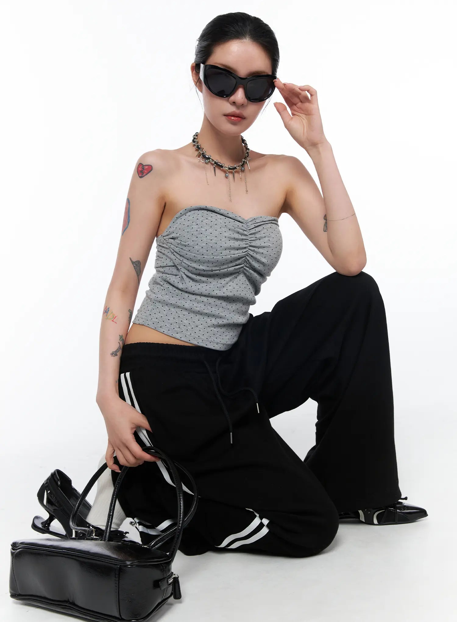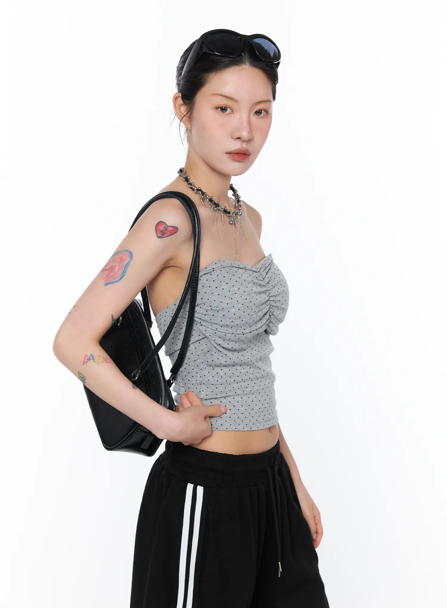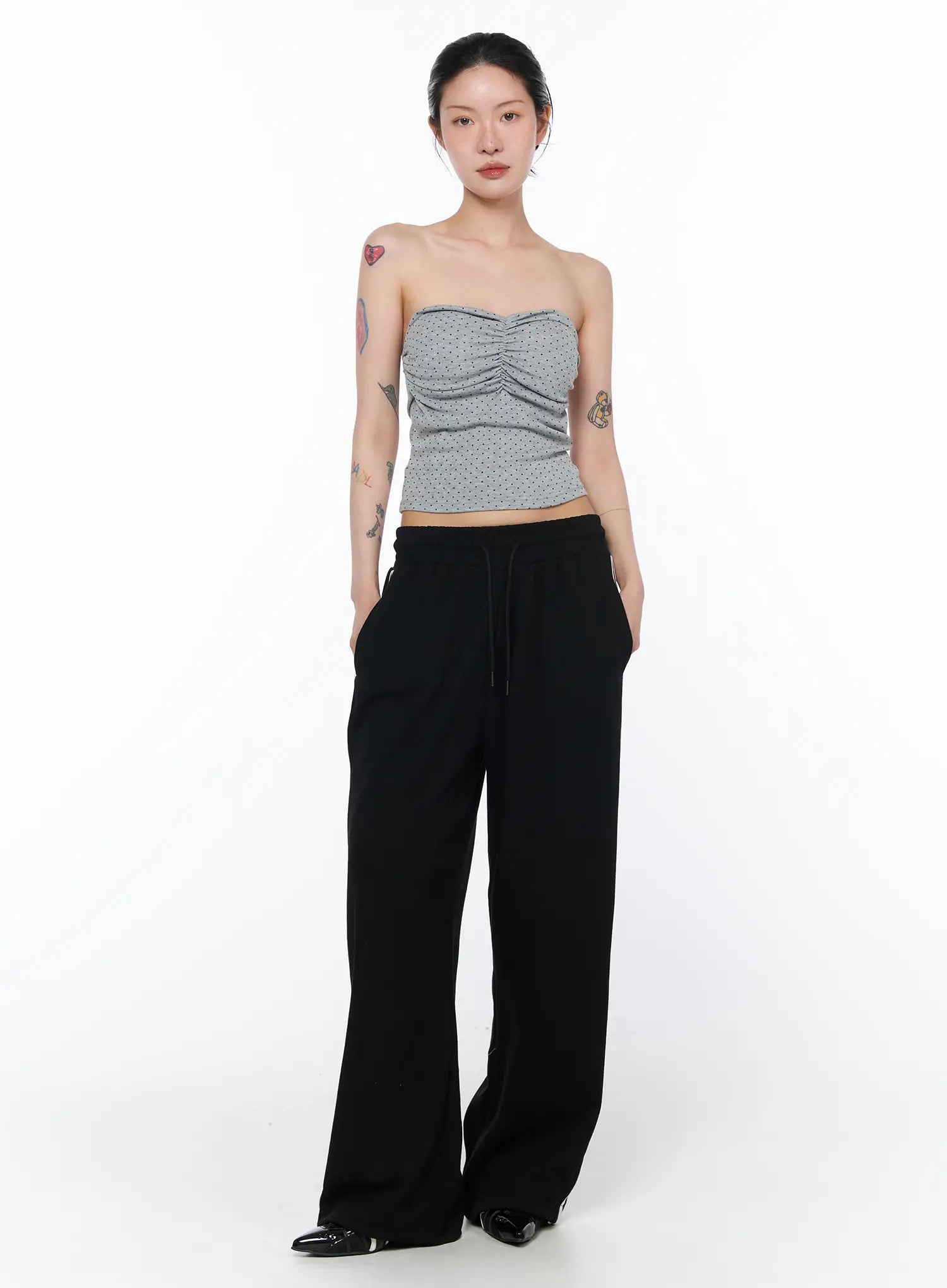 Ruched Polka Dot Strapless Top CA527