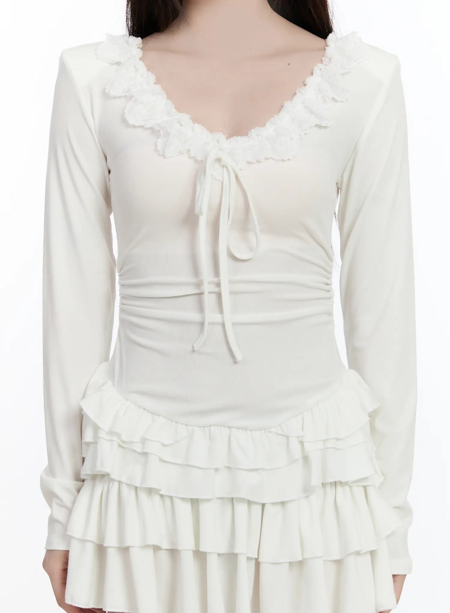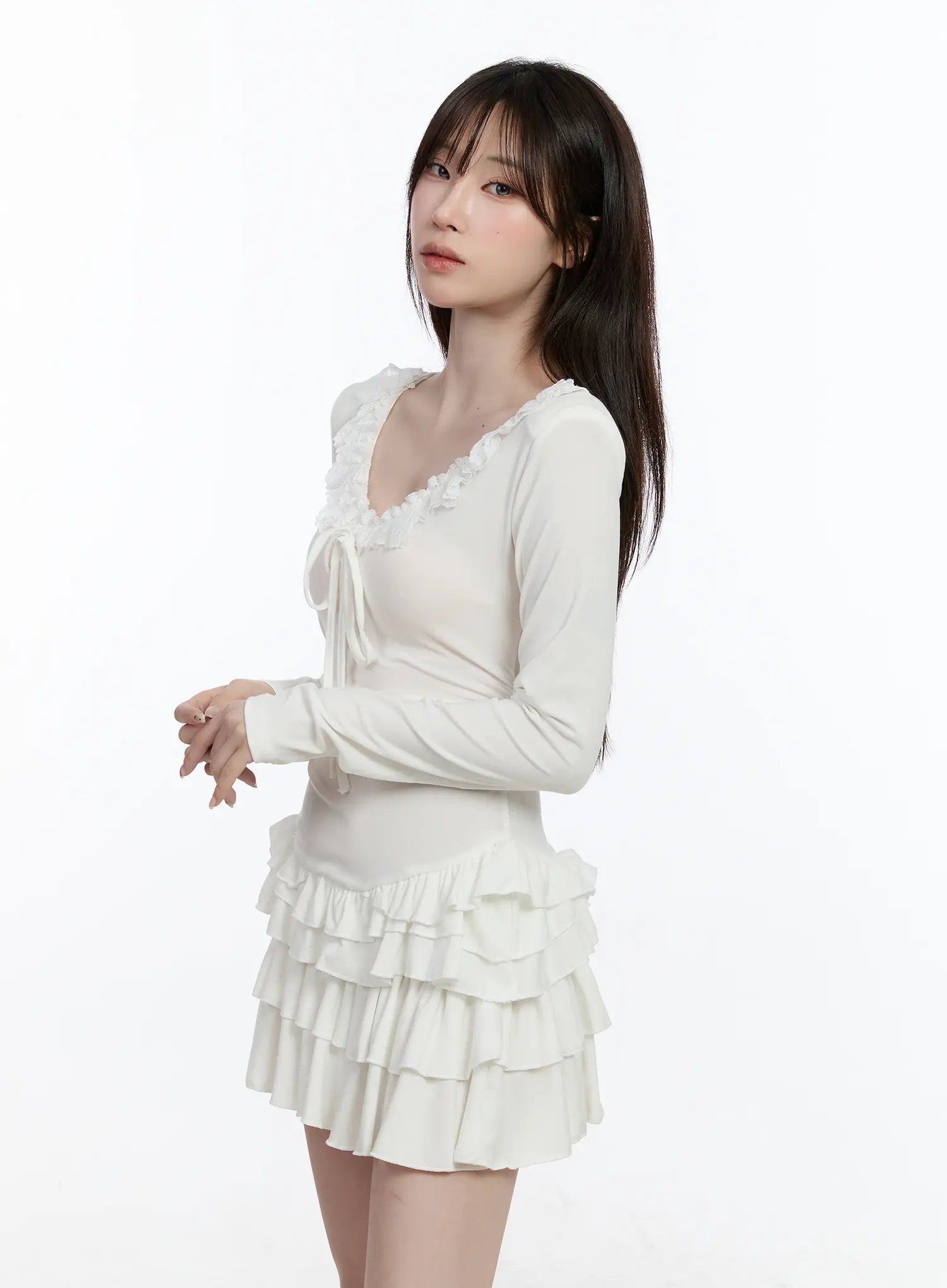 Ruffle Layered Mini Dress with Shoulder Pads CA501