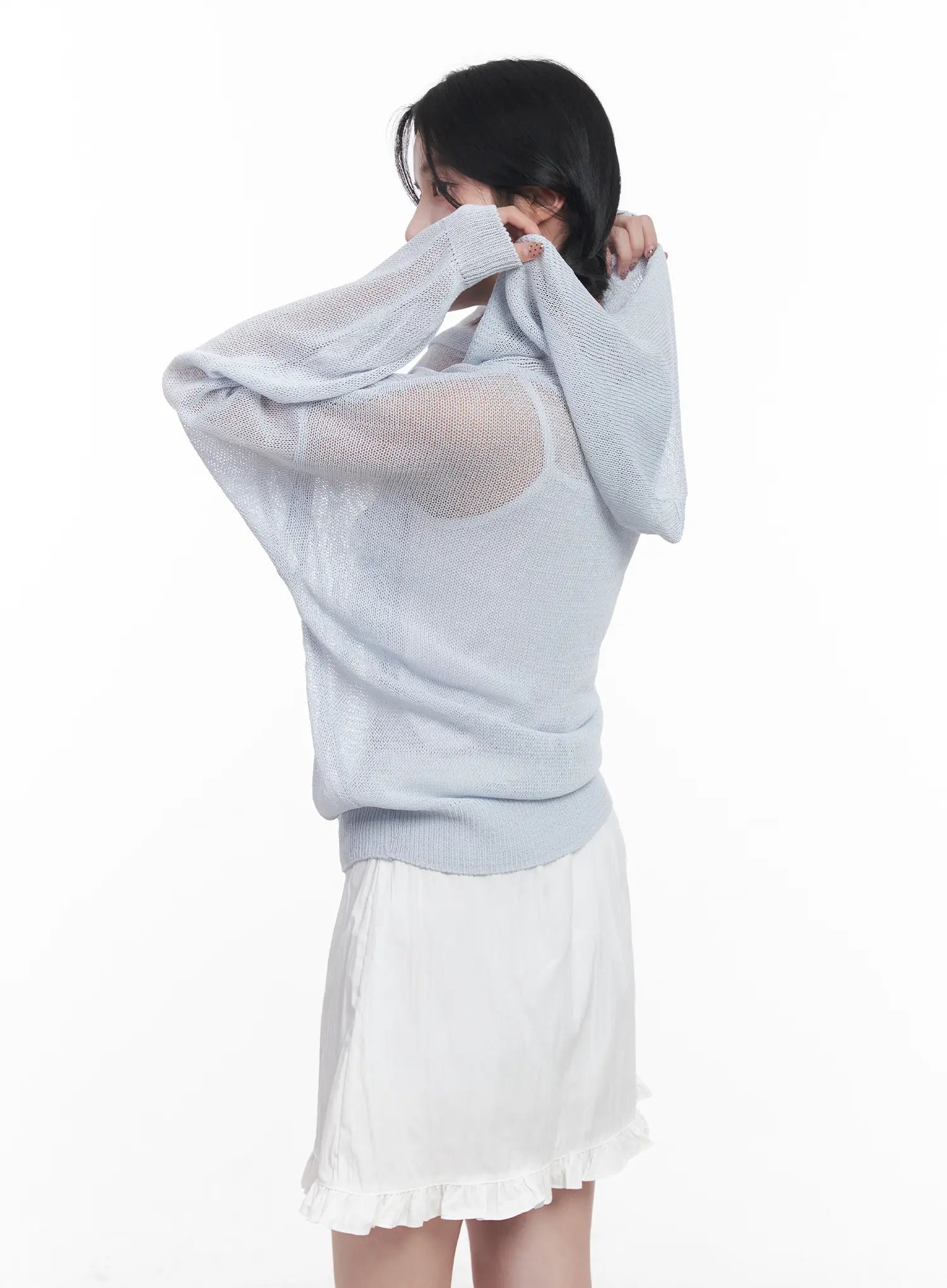 Sheer Buttoned Hooded Cardigan CU523