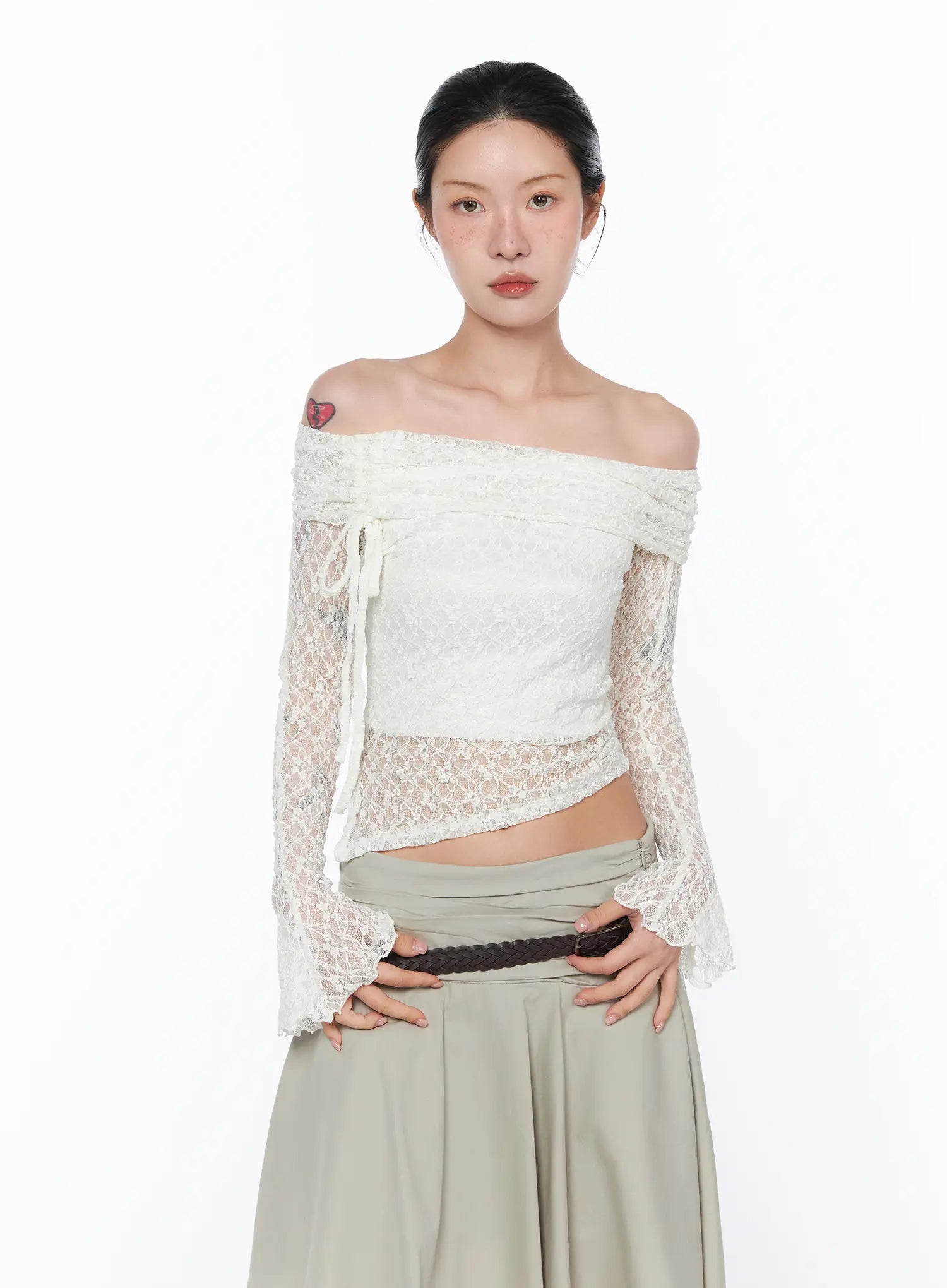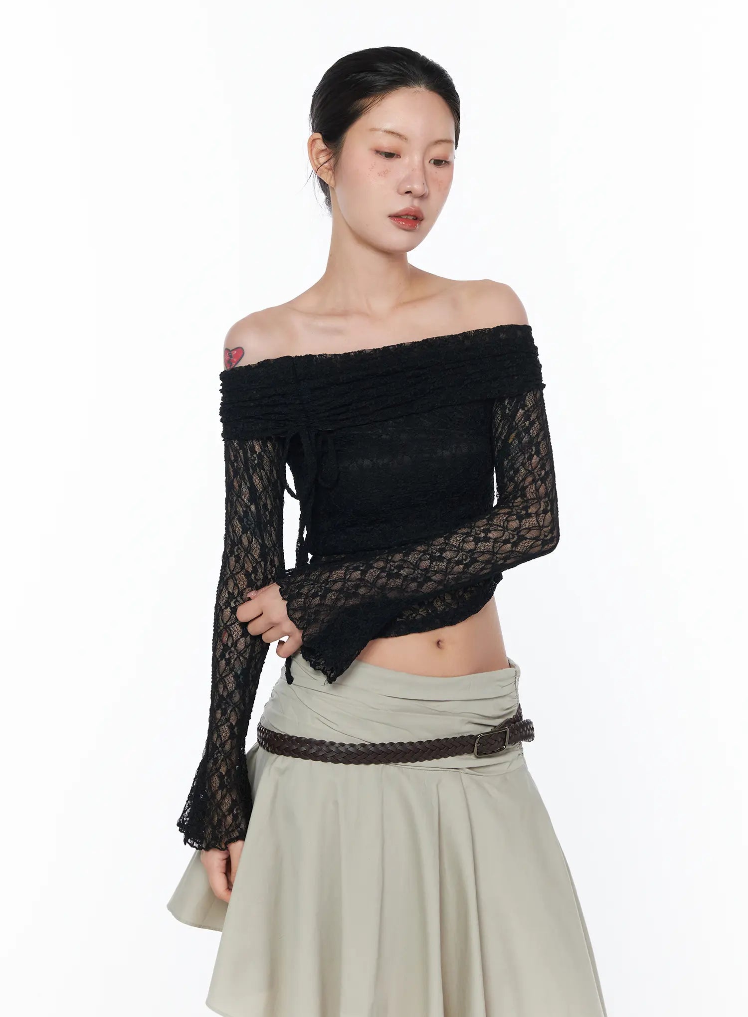 Sheer Off-Shoulder Lace Top CA524