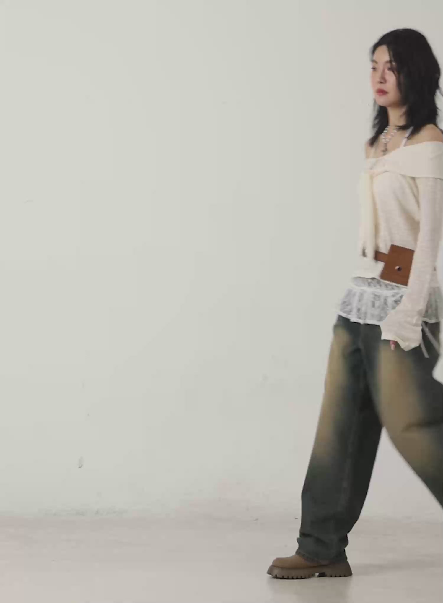 Sheer Ribbon Off-Shoulder Long Sleeve Top CJ522