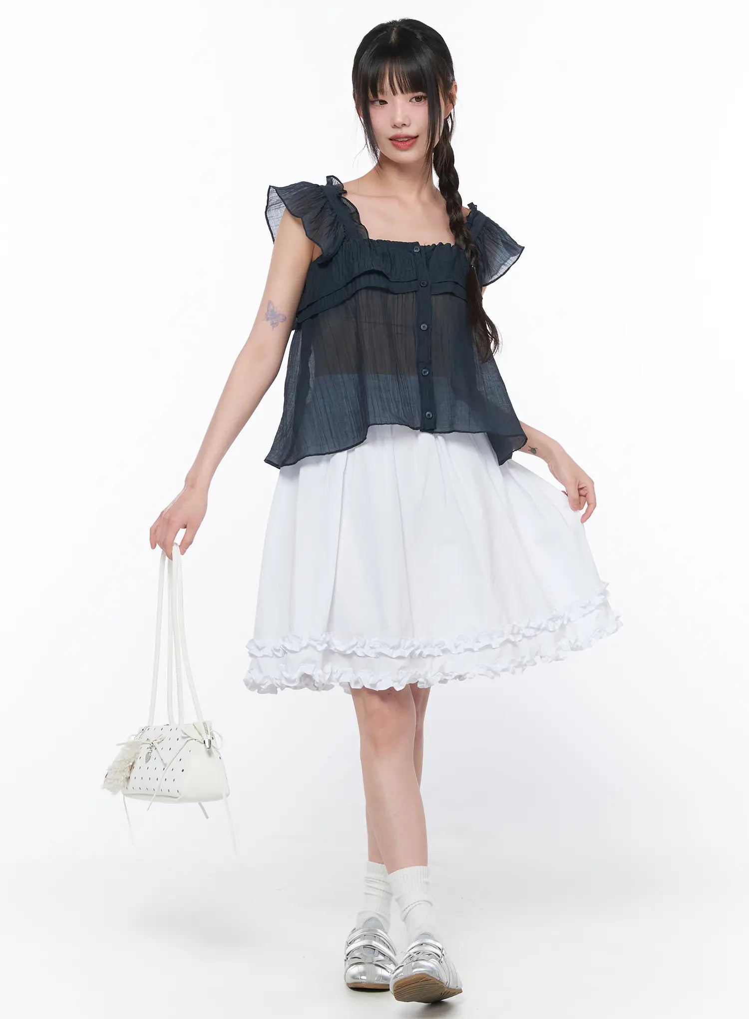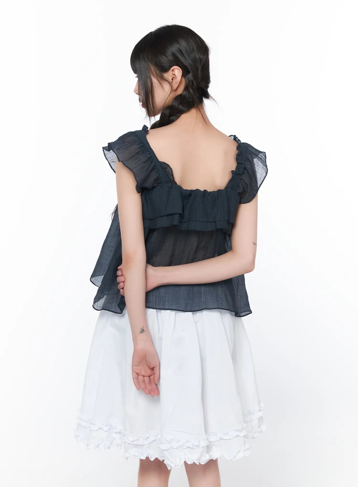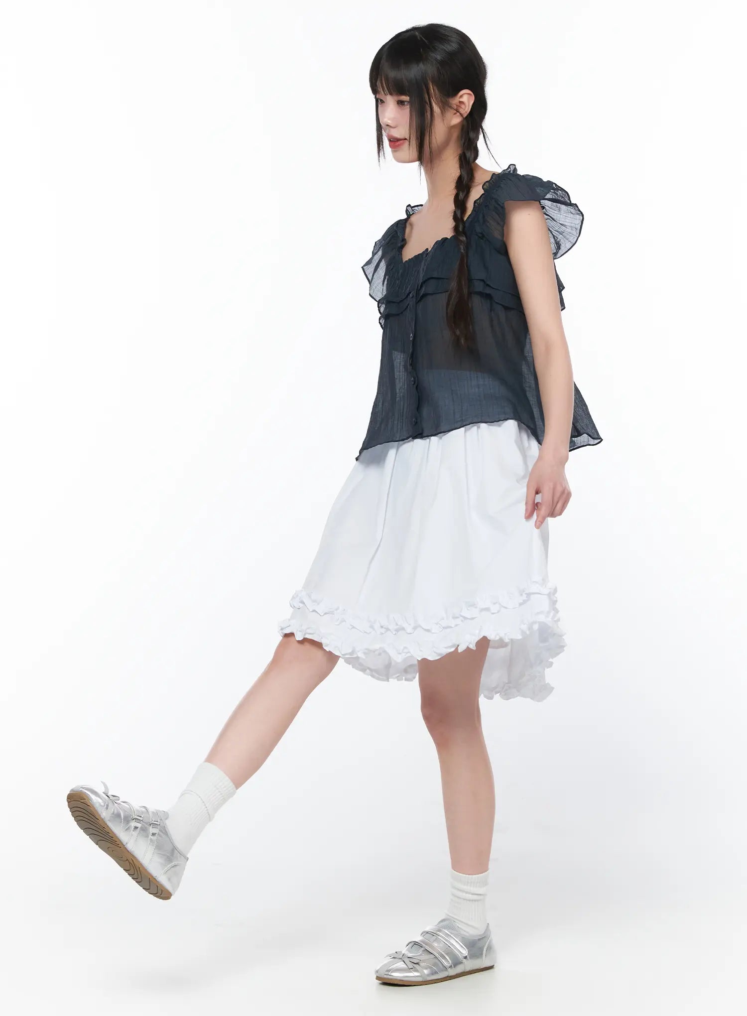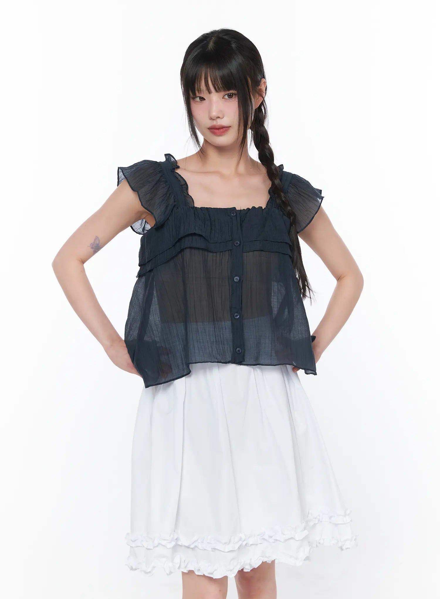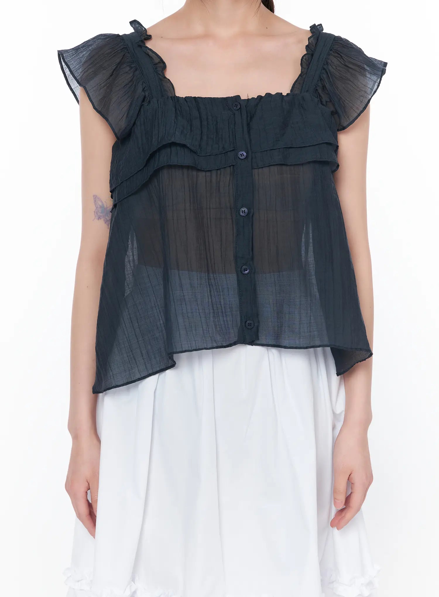 Sheer Ruffle Sleeve Blouse CA528