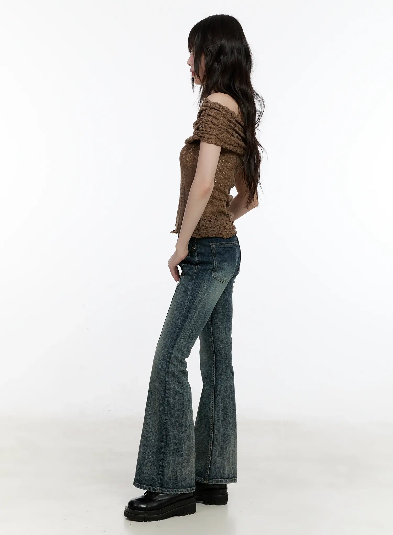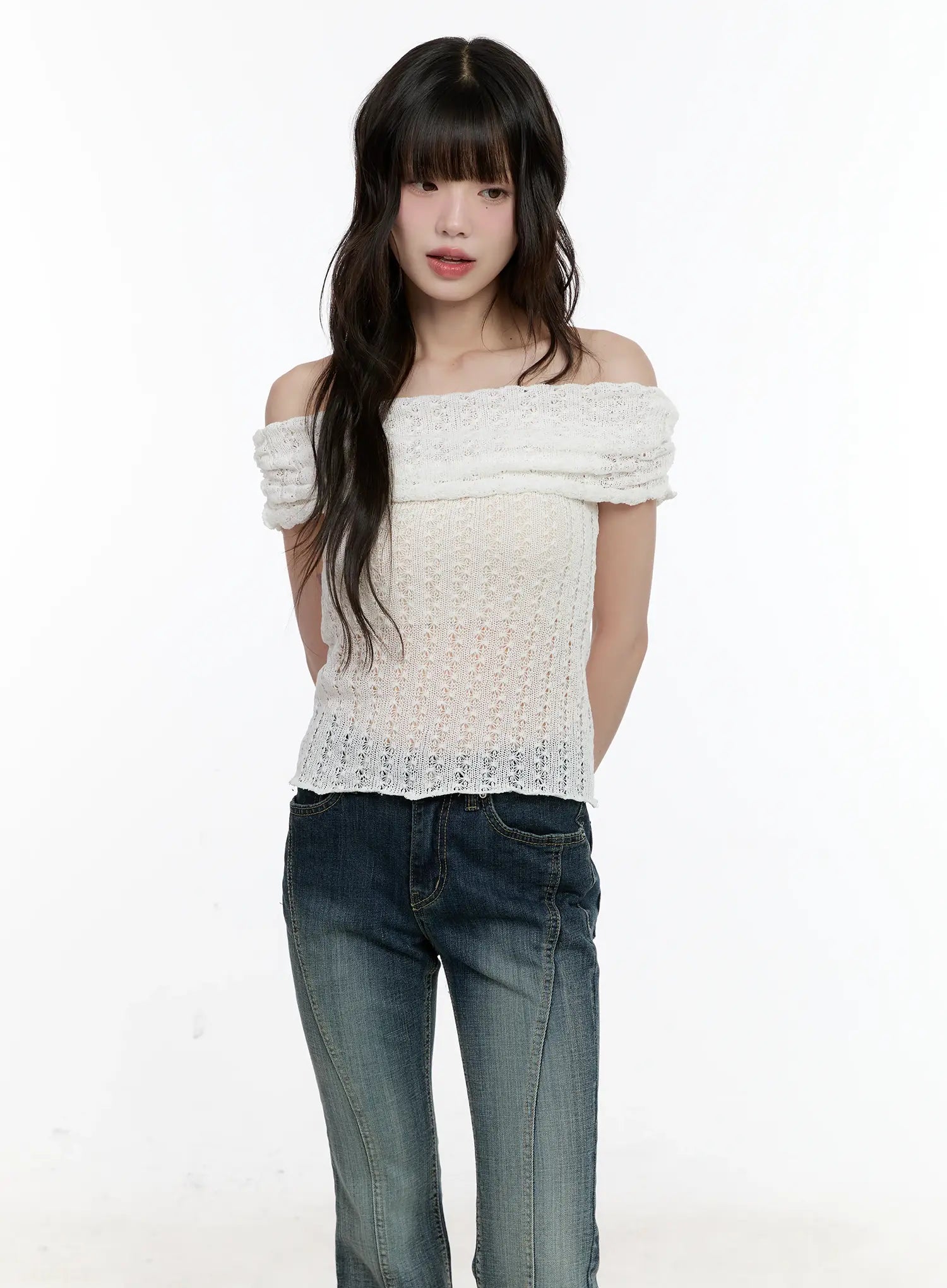 Shirred Off-Shoulder Knit Top CL504