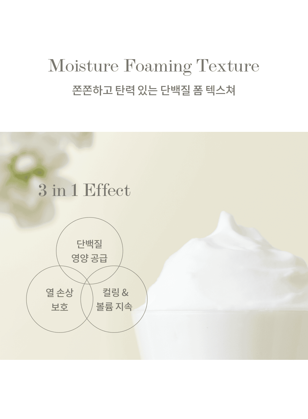 - This unique 3-in-1 foam essence offers nutrition, heat protection, and long-lasting curl and volume.