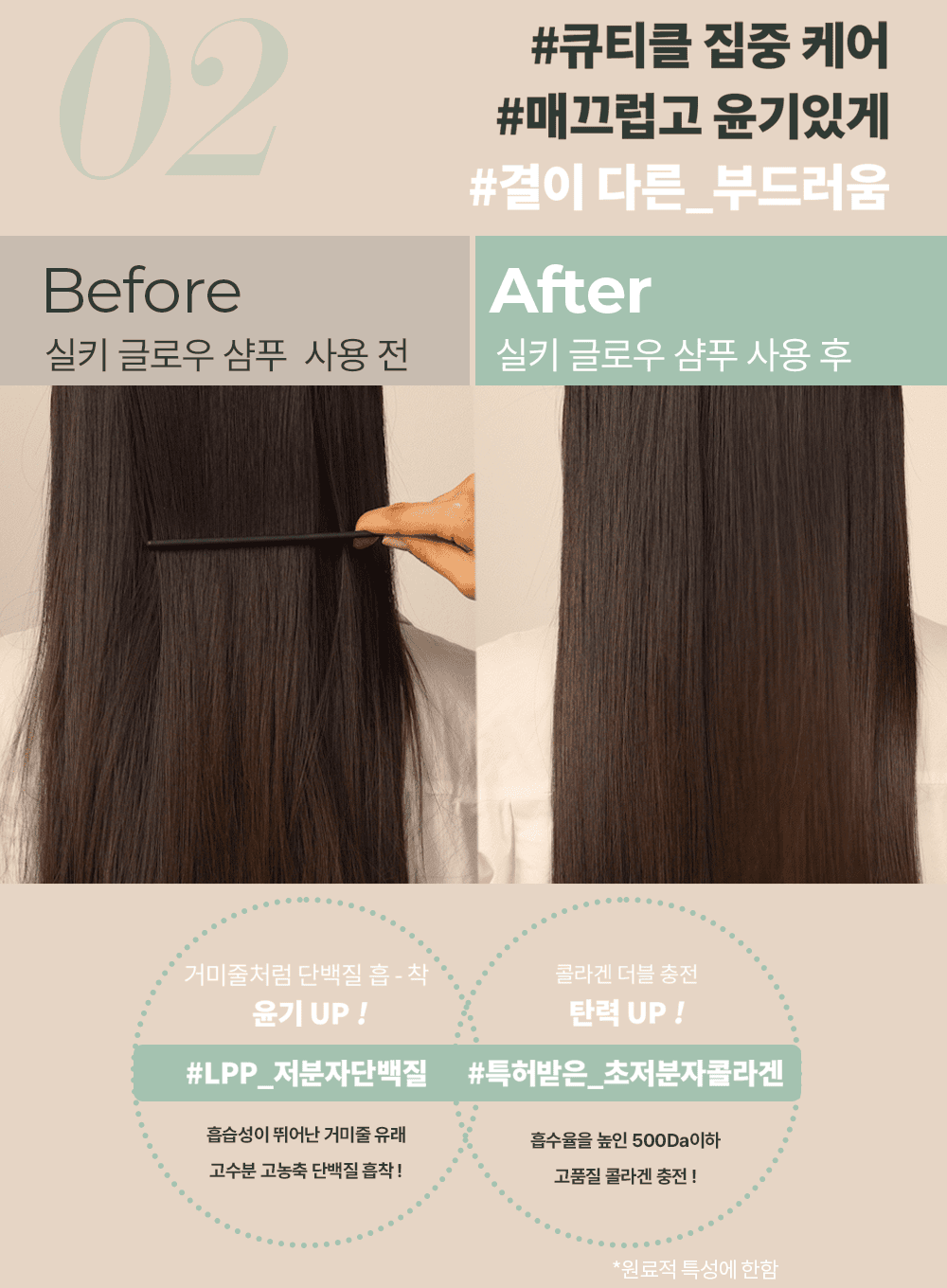 Power of ultra-fine protein molecules for all-day healthy hair care! Silky Glow Shampoo