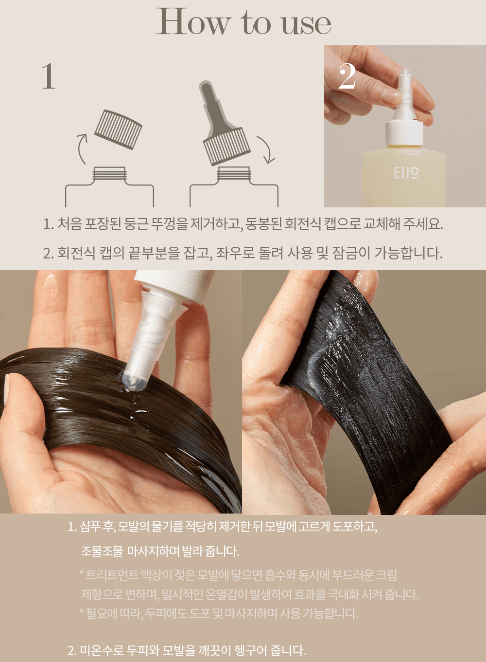 Wet your hair and scalp with lukewarm water, apply an appropriate amount evenly to your hair and scalp, if water type change to cream type, massage it, and rinse it thoroughly.