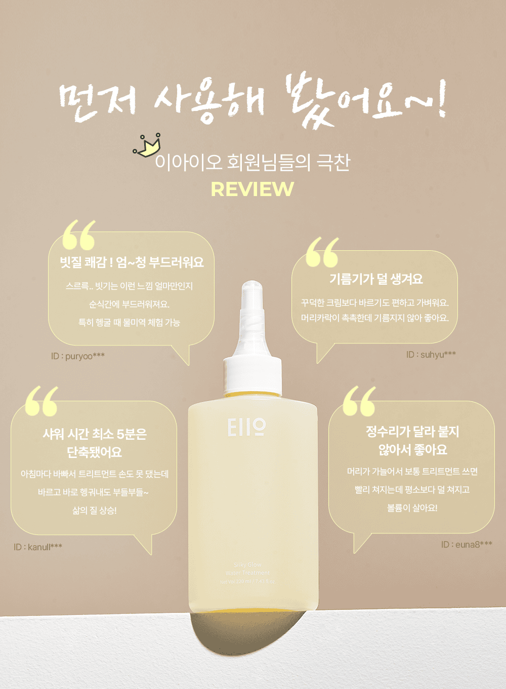 Instant perfect hair care in a busy life! EIIO SILKY GLOW WATER TREATMENT