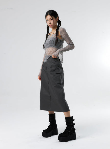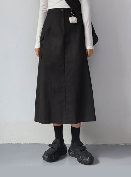 Simple High Waist Button Cargo Long Skirt CO05