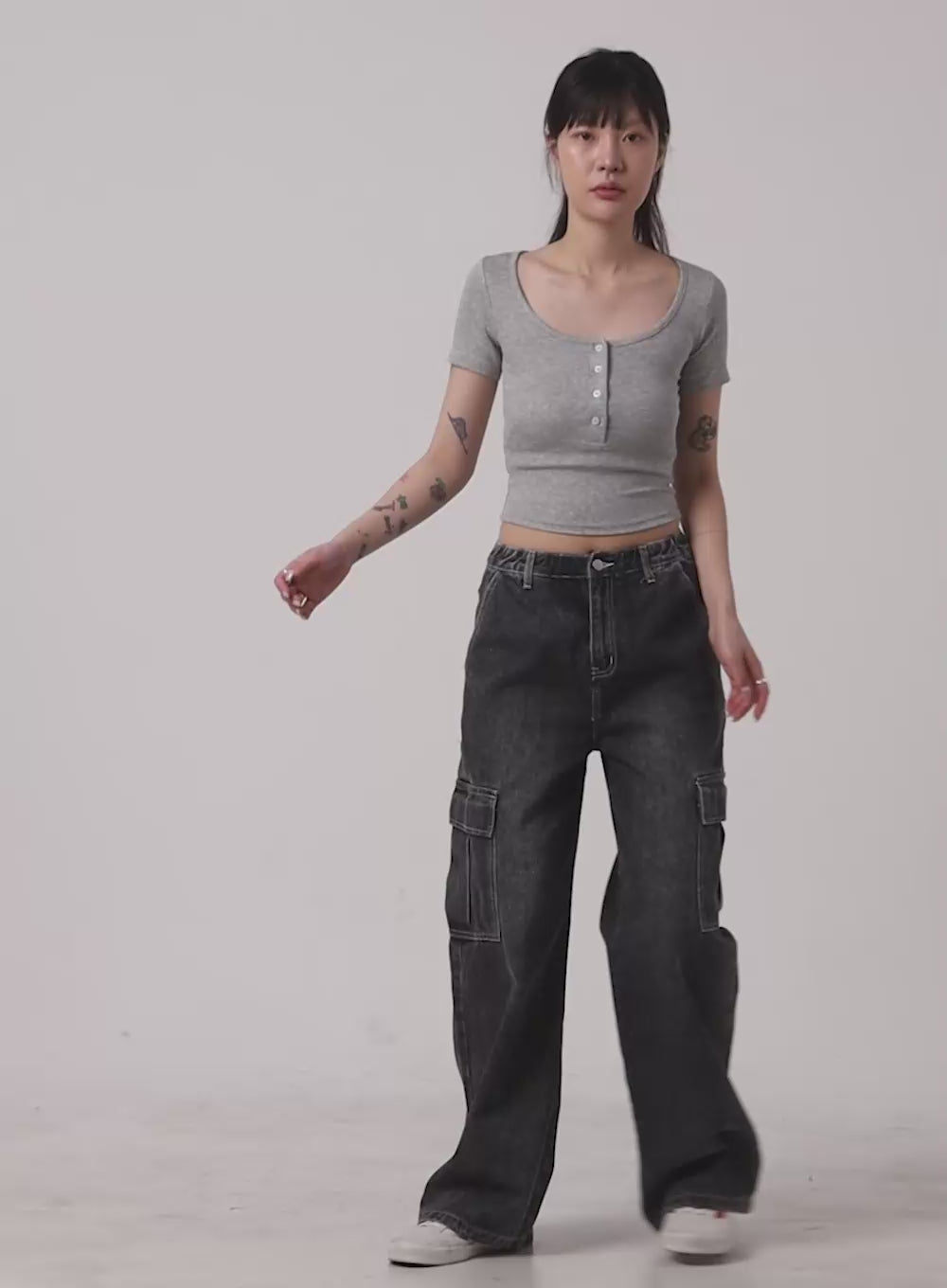 Slim Fit Buttoned U-Neck Crop Top IY410