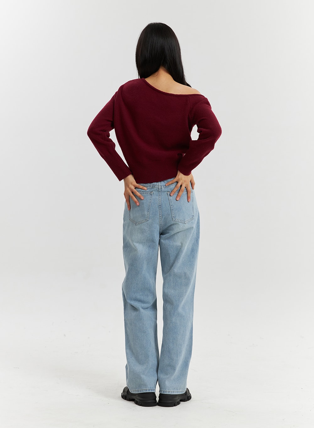 Solid Asymmetrical Neck Long Sleeve Knit Top OD320