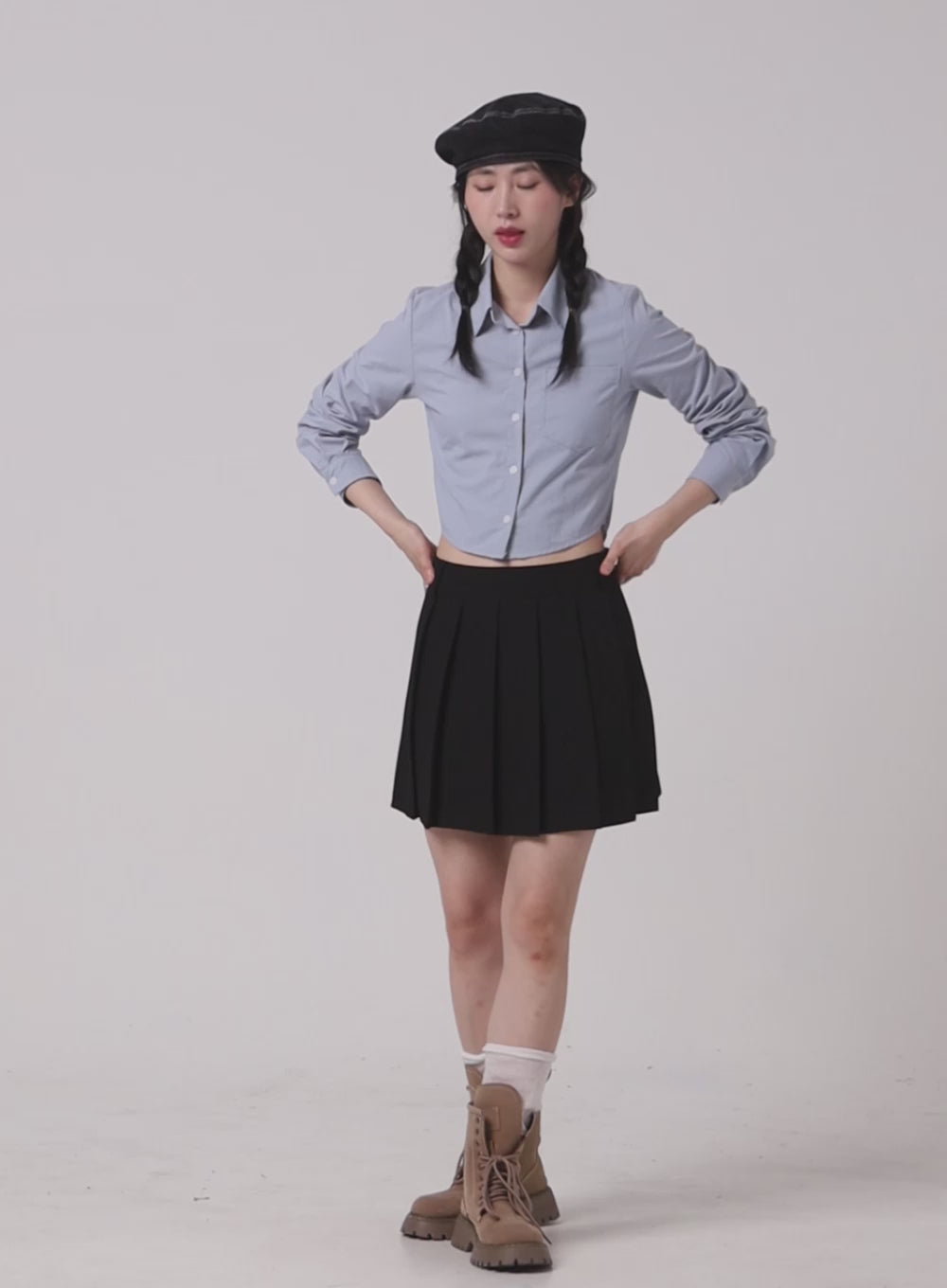 Solid Collar Button-Up Crop Top OM408