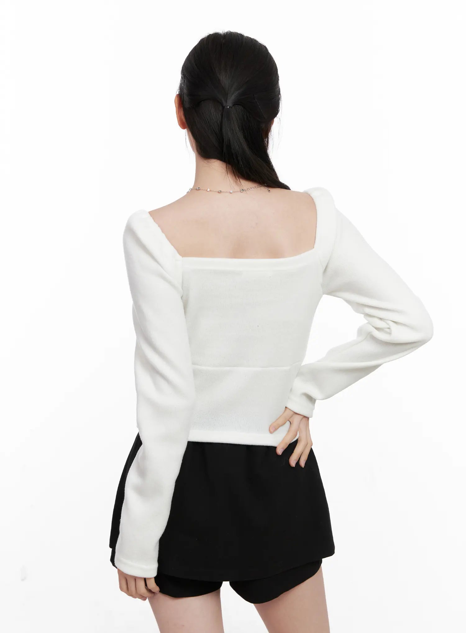 Square Neck Shirred Long Sleeve Top CN504