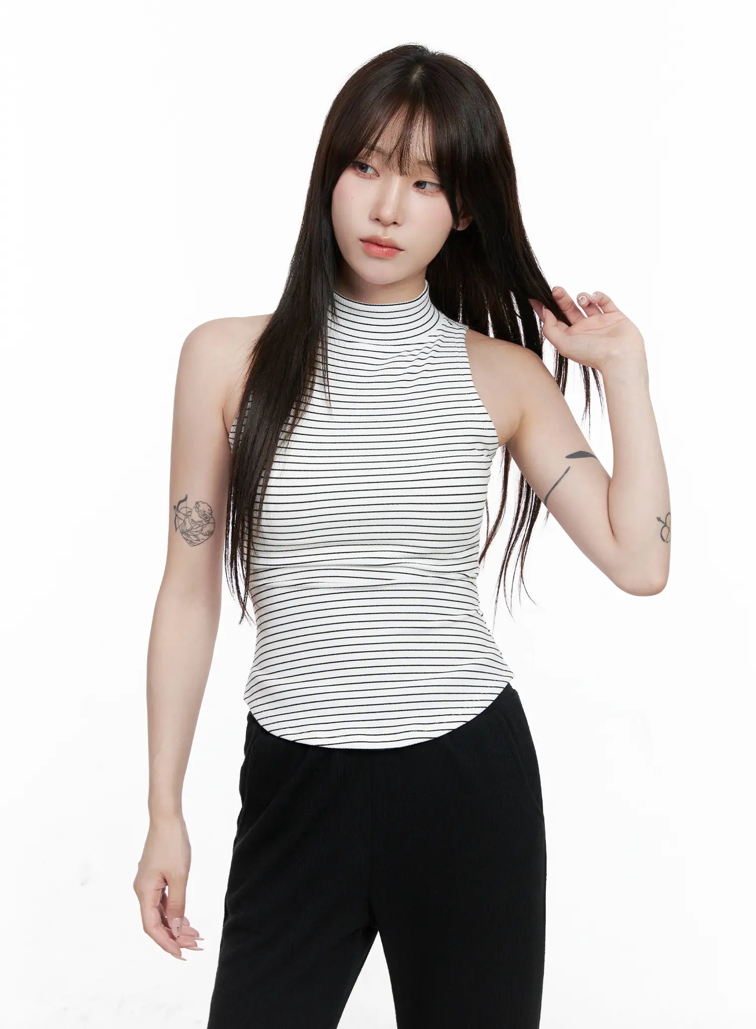 Striped High Neck Sleeveless Top CO521