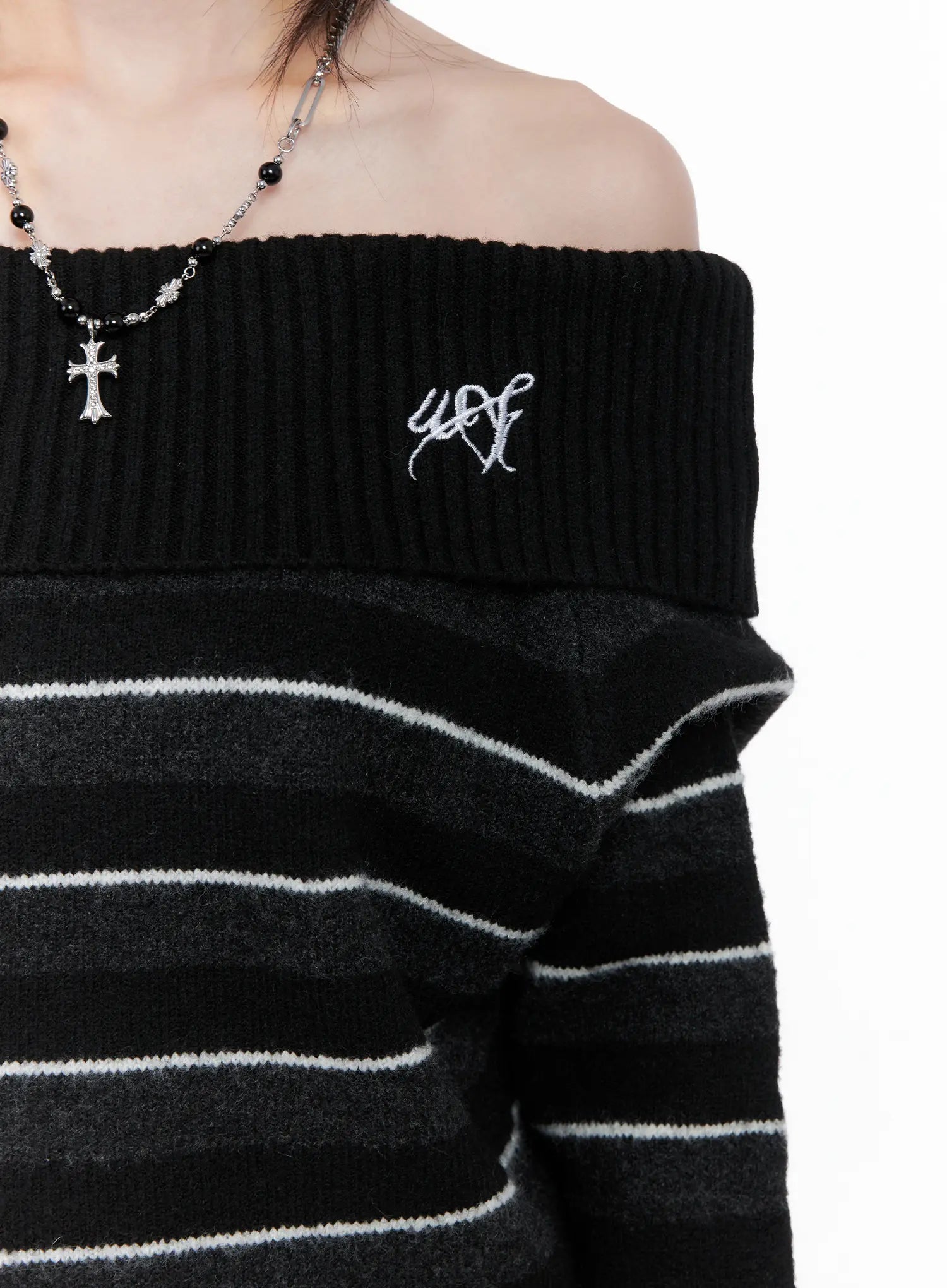 Striped Off-Shoulder Sweater and Shorts Set CS529