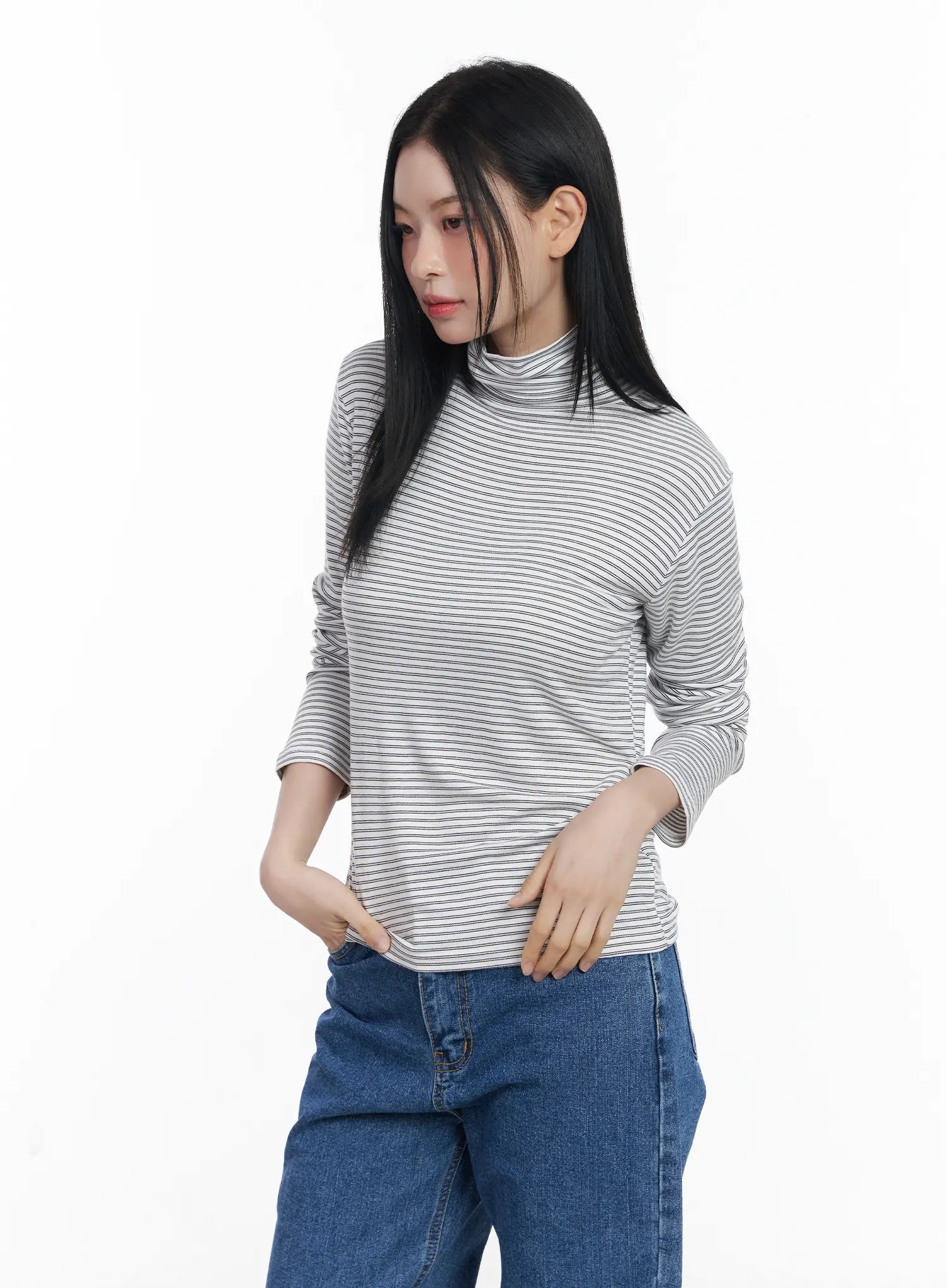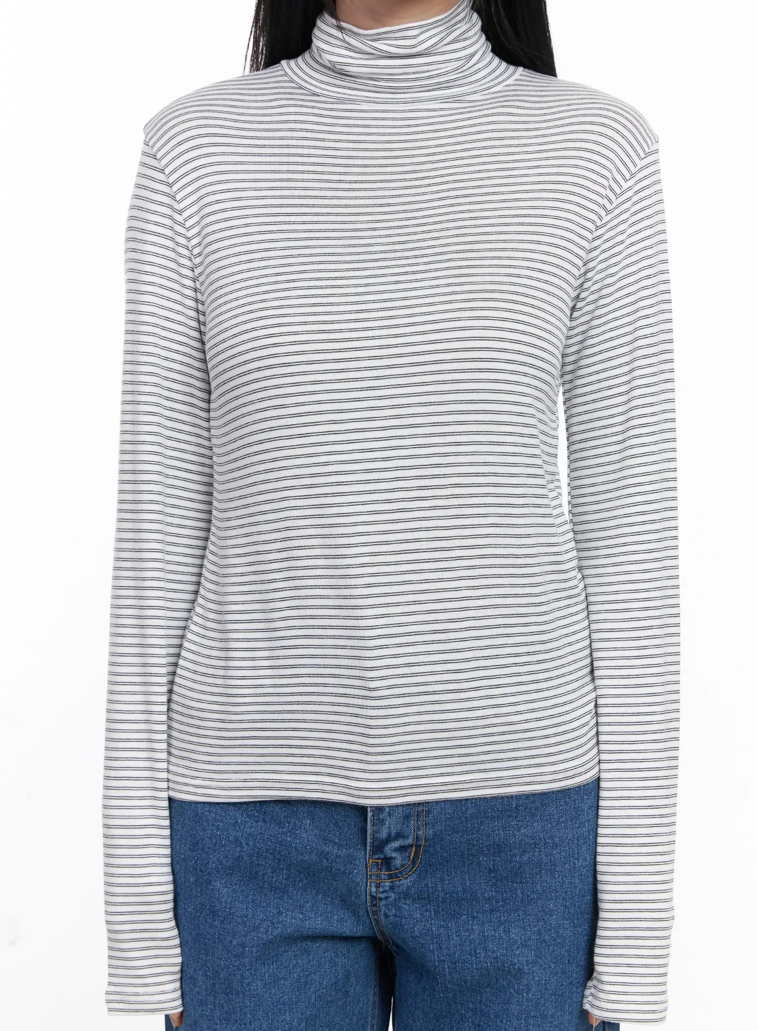 Striped Turtleneck Long Sleeve Top CJ519