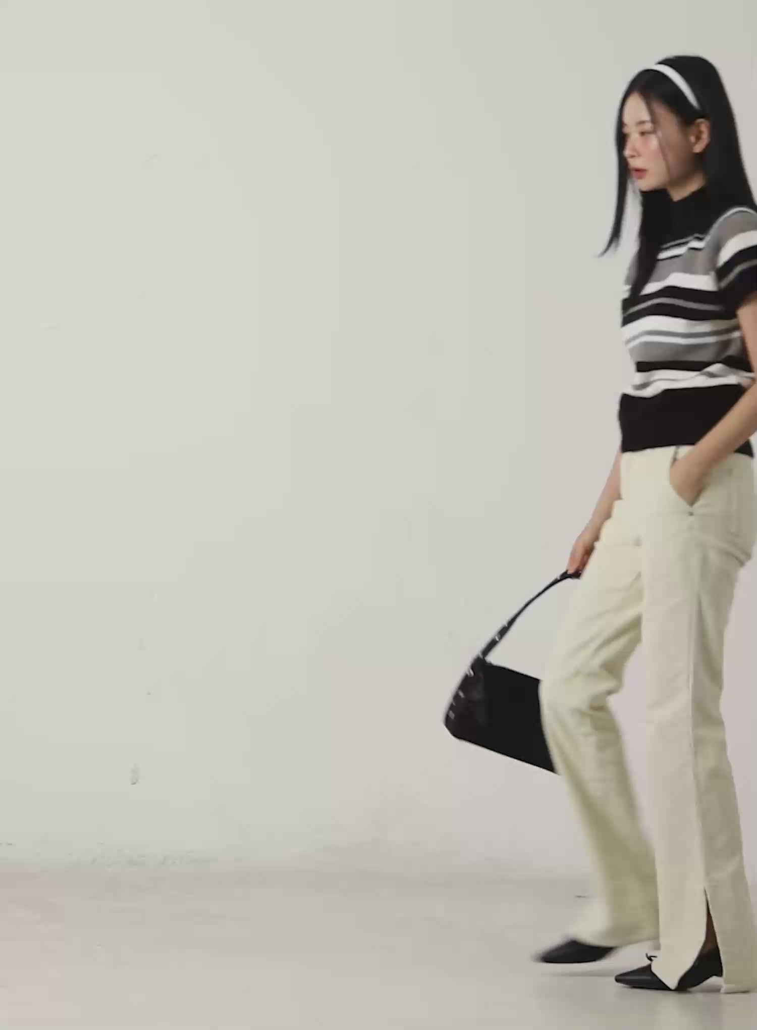 Striped Turtleneck Short Sleeve Knit Top CJ520