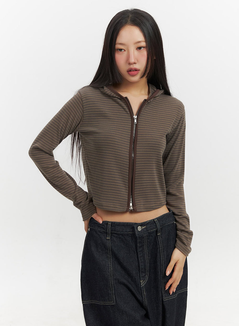 Striped Zip-Up Hooded Crop Jacket IF510