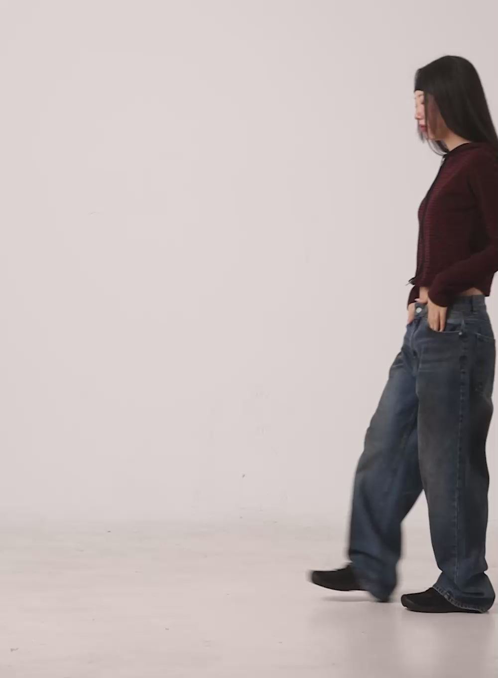 Model is wearing size S/M and the color Dark red.