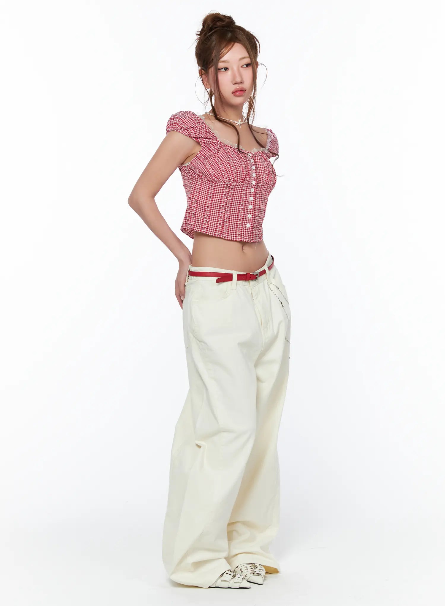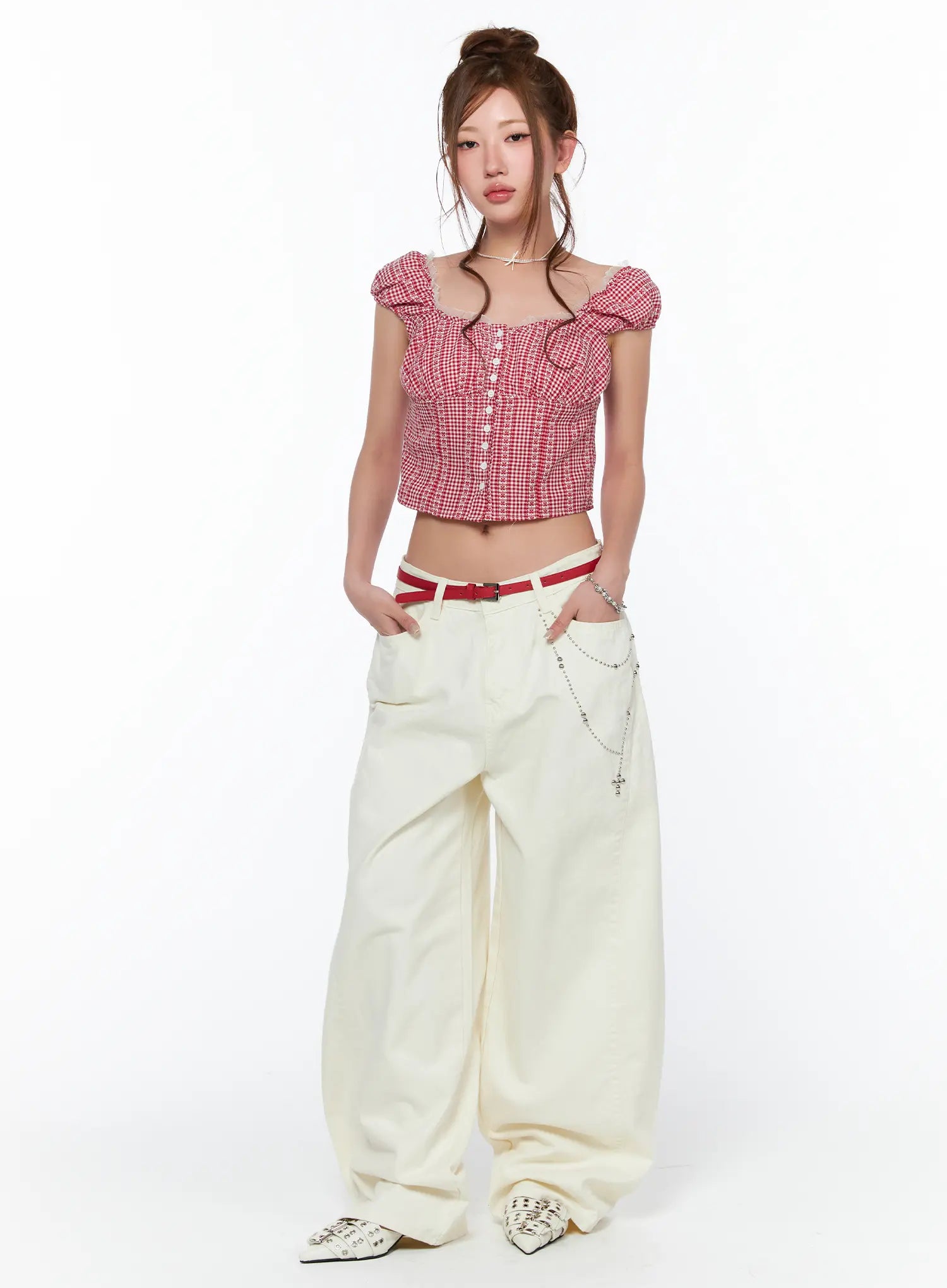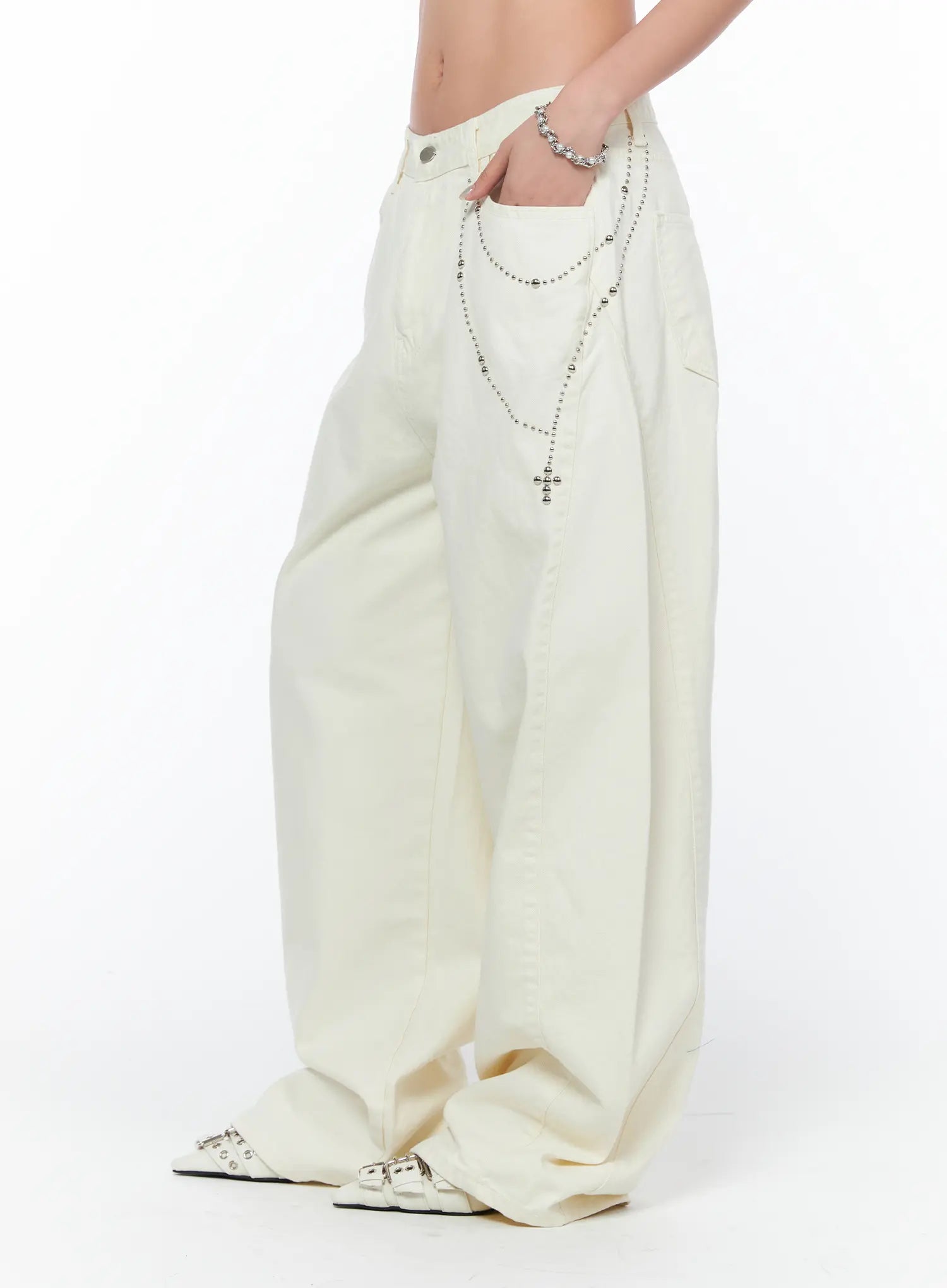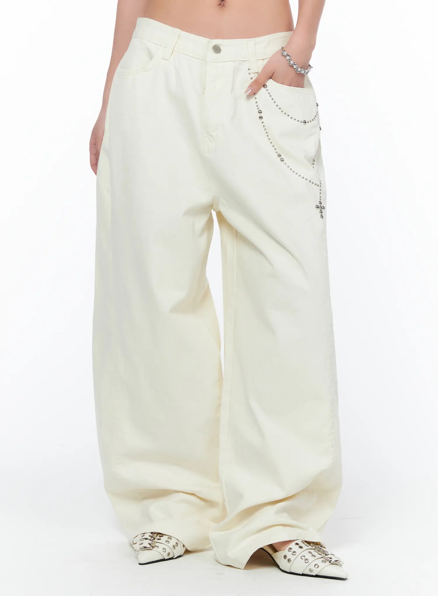Studded Cross Chain Wide Pants CA514
